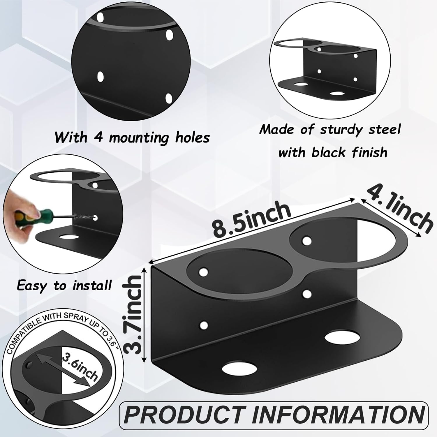 - Complete Set – Ready to Use: Includes 2 spray bottle holder wall mount. Each can rack accommodates 2 bottles, ideal for organizing spray cans, aerosols, lubricants, or paint bottles in garages, workshops, or utility rooms