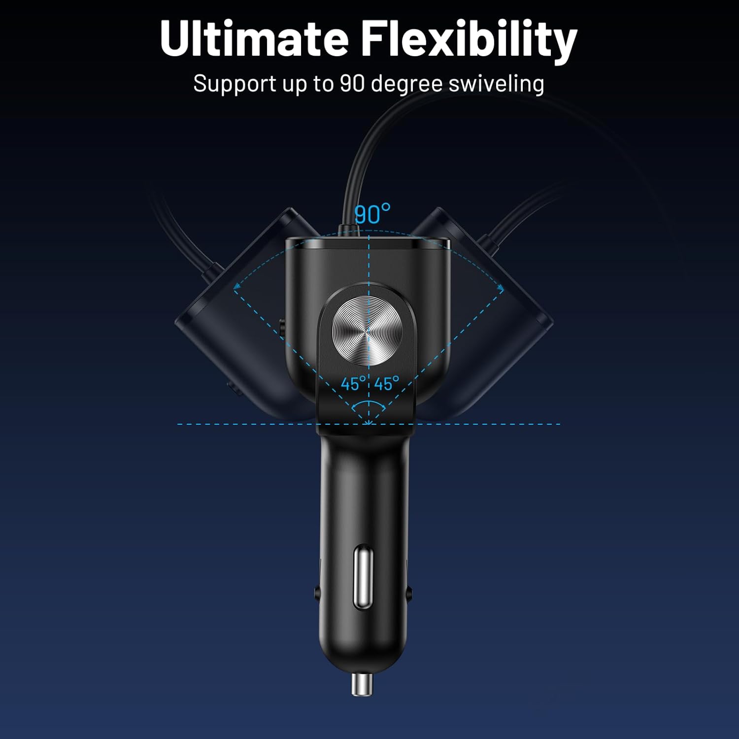 - 【Flexible 180° Rotation】The 180-degree rotation feature is incredibly user-friendly, making it easy to plug in and unplug the devices. Saves more space in your vehicles, to provide greater efficiency and convenience for your car. The double cigarette lighter adapter applicable for different cigarette lighter positions of different vehicles models new/older, for Ford F-Series/RAM/Chevrolet Silverado pickup trucks, for Toyota RAV4/Honda CR-V/Tesla Model Y SUV, off-roader, sedan, heavy trucks, supercar, RV, BEV, etc.