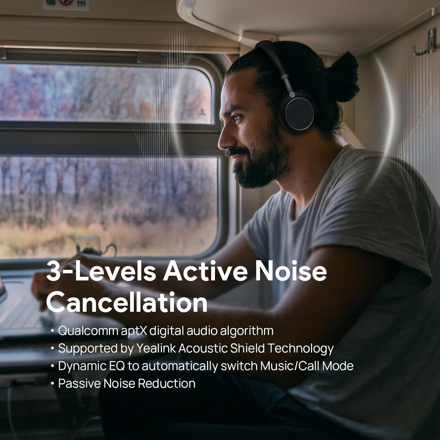 - ANC Headphone & Hi-Fi Audio β€ The wireless headset BH76 supports 3 levels of active noise cancellation (ANC), bring customizable noise cancellation adjustment in different environments. Adopted Hi-Fi level audio codec aptX delivers pure and delicate sound with less distortion, lower noise floor, and intricate details of high-quality music, which bring users a CD-level lossless audio quality experience.