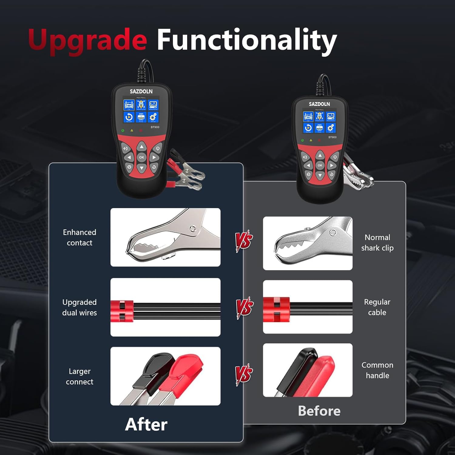 - 【Universal Compatibility】The ultimate 6V/8V/12V battery testing solution for cars, trucks, boats, RVs, motorcycles, and more! Supports 5-3000 CCA batteries across Flooded, AGM, GEL, EFB types. Compliant with SAE/JIS/DIN/BCI/GB standards—no lithium batteries.
