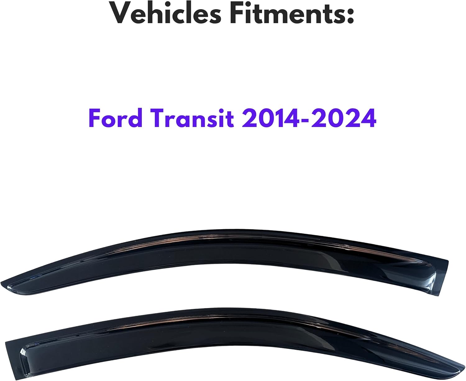KPY Window Visor Compatible with Ford Transit 2014-2024, 2PC Rain Guard Side Window Vent Deflectors Tape-On Style, 2015 2016 2017 2018 2019 2020 2021 2022 2023