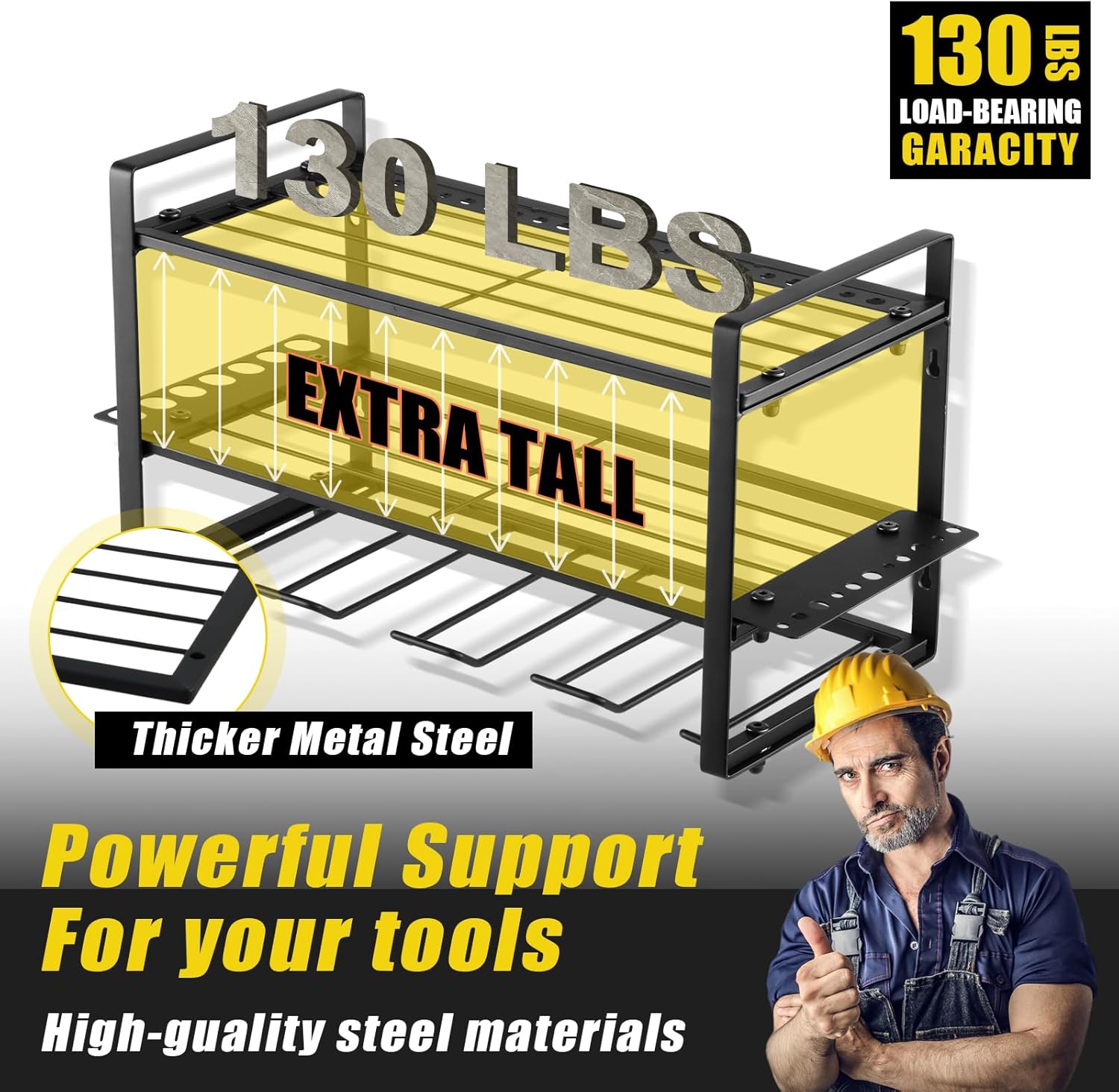 - Large Capacity 3-Tier Design: The garage tool organizer wall mount holds up to 8 cordless drills and other heavy and small tools. and a hammer holder, pliers holder and screwdriver holder are added to the side