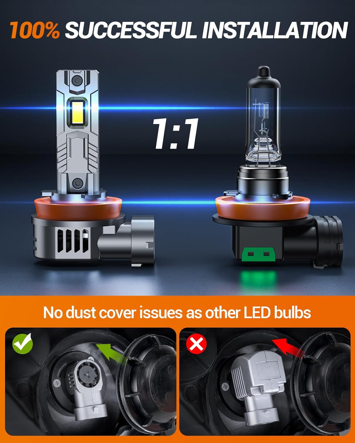 - Advanced Focus Pattern: Equipped with a 0.05-inch ultra-thin copper substrate, our 9005/hb3 h11/h8/h9/h16 bulbs eliminate flickering and dimness, which are often found in traditional bulbs. A focused beam pattern is designed to minimize glare to meet oncoming traffic, thereby improving safety for all road users