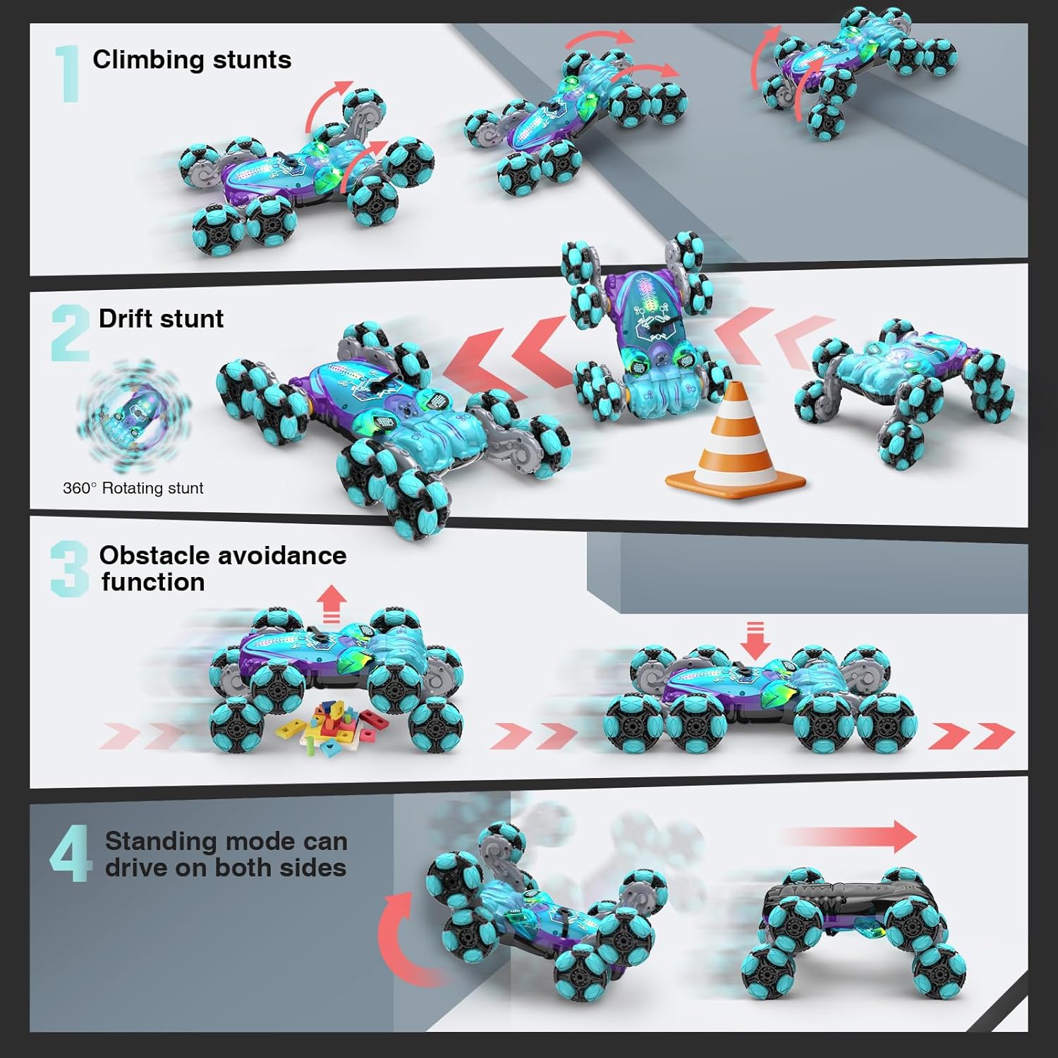 8WD Gesture Sensing RC Stunt Car, Boys Toys with Spray & Light, Hand Controlled RC Car Toys Gift for Kids Boys Age 8-12