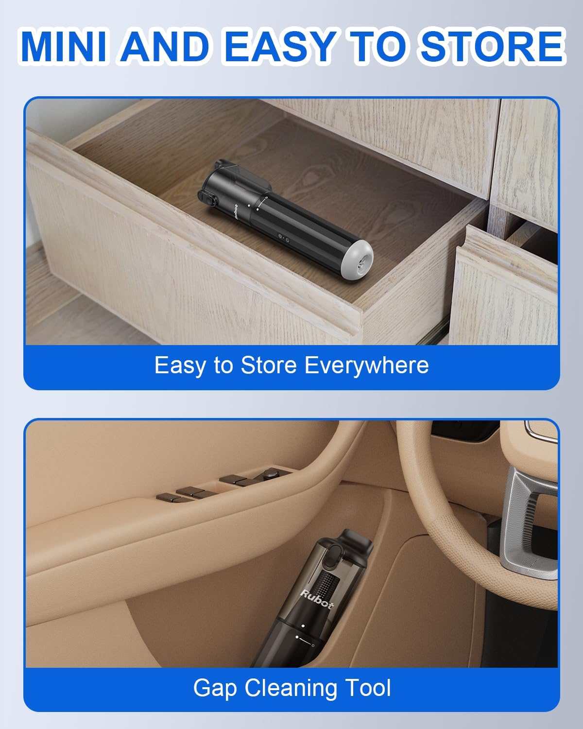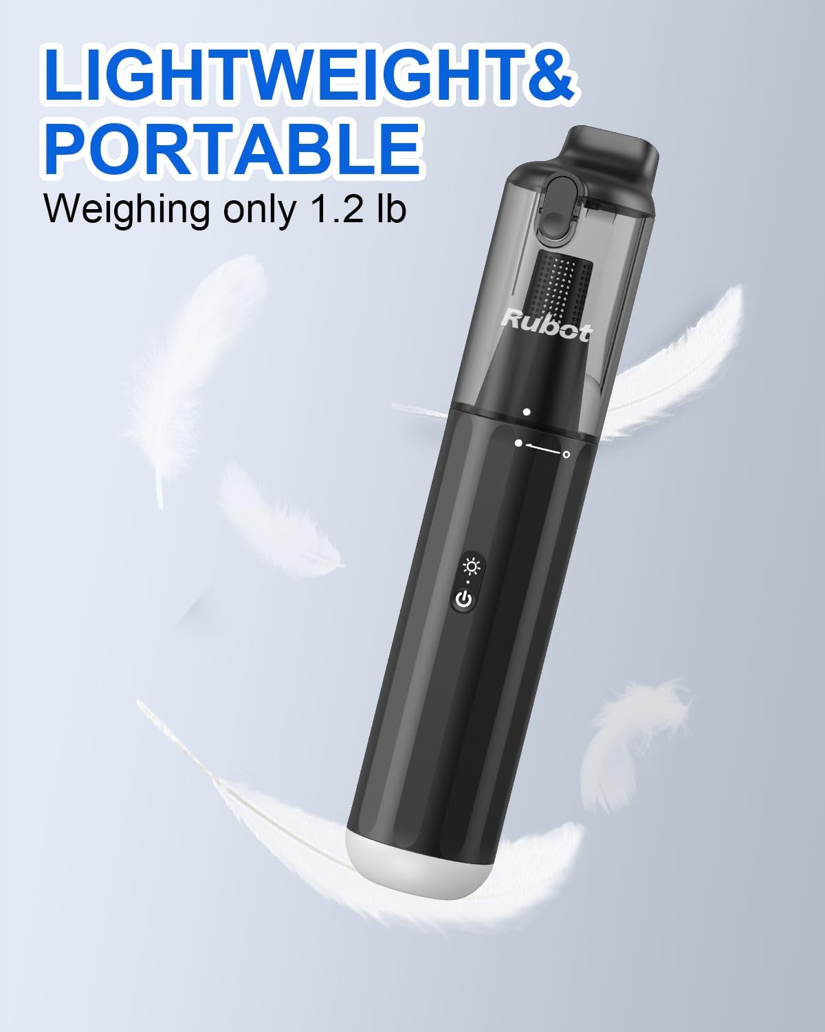 RUBOT Handheld Vacuum Cordless, Portable Car Vacuum with 2-Speed, 15KPA Powerful Suction Vacuum Cleaner, Lightweight 4-in-1 Hand Held Vacuum for Car Home Office and Pet Hair