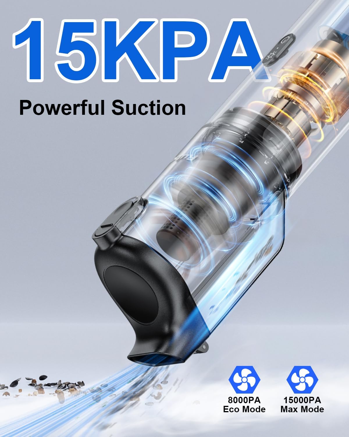- 🚗Lightweight & High-Powered: With a cleverly designed extra-large dust bin, you can clean multiple corners without frequent emptying. The handheld vacuum, weighing only 1.3 LB, but delivers an impressive 15Kpa suction force. It effortlessly tackles dirt, dust, and debris in any nook and cranny, ensuring a fatigue-free cleaning experience.