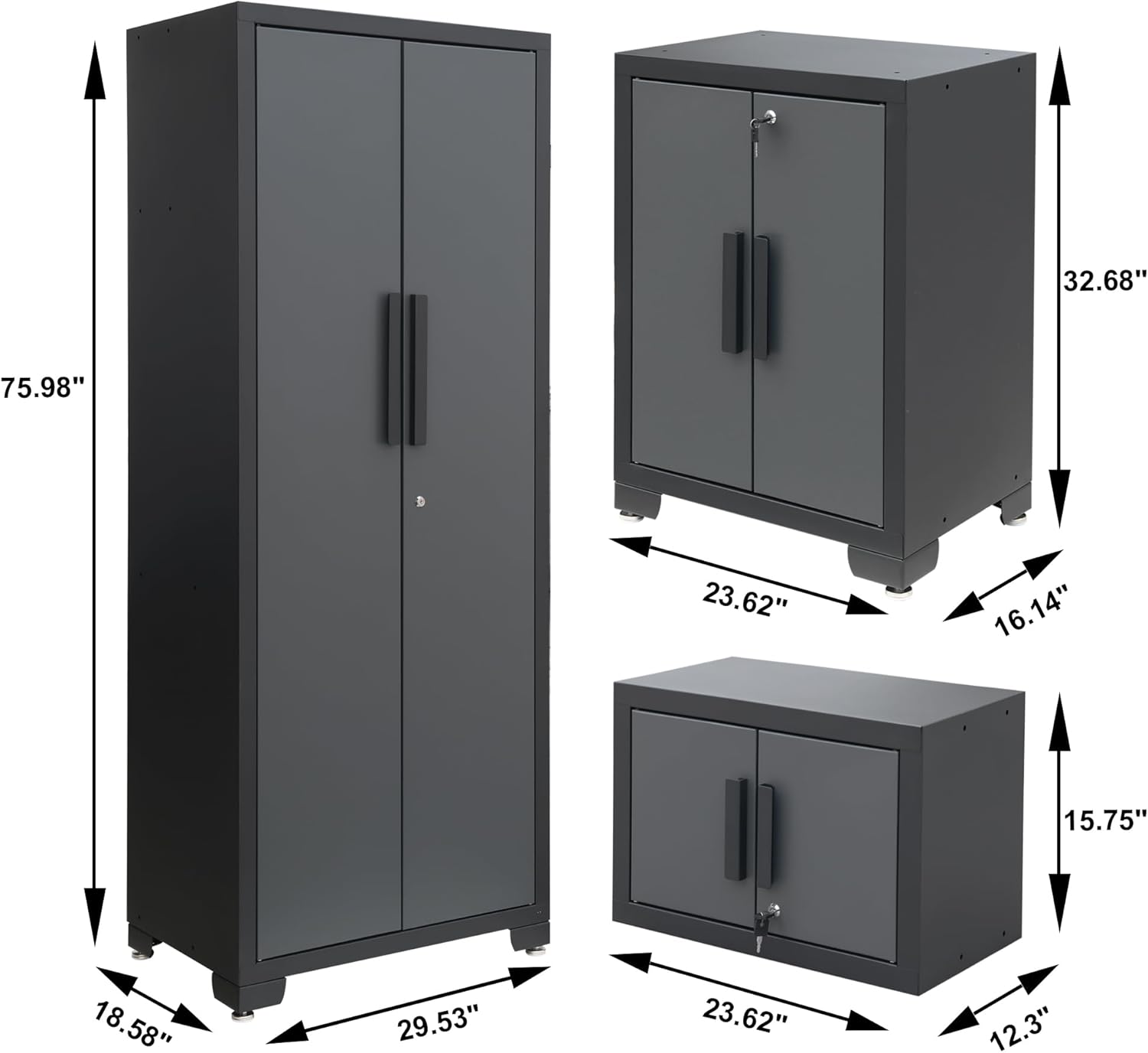 - All garage storage cabinets are fully lockable to keep safe and have side holes to connect them together with less effort; Doors have magnetic latches (The handles need to be installed from the back to the front)