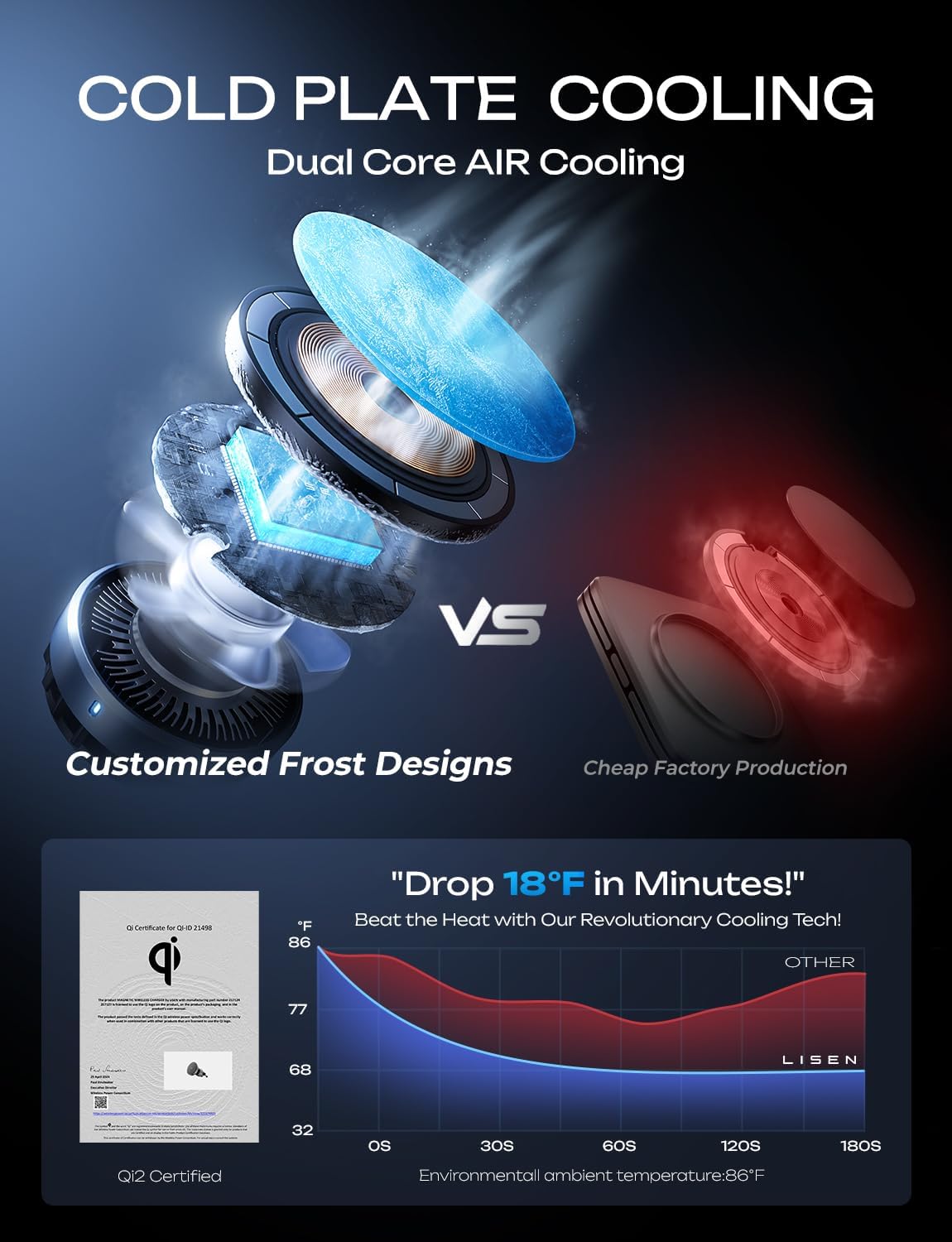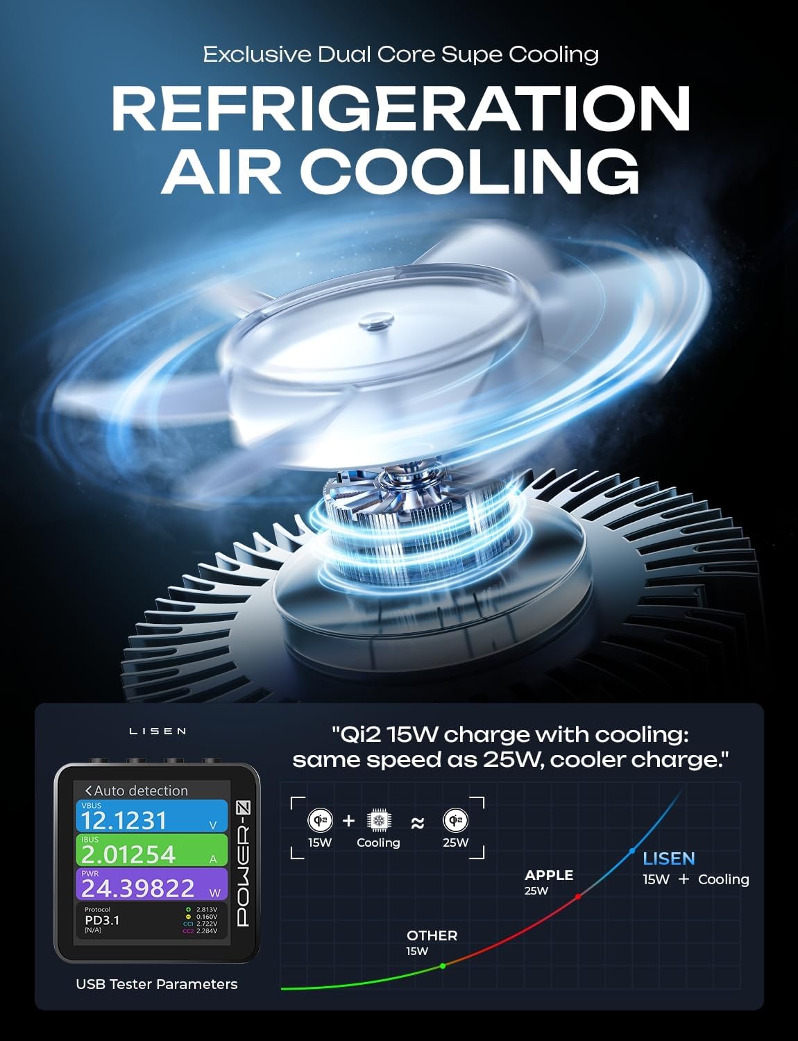 - Package Includes: LISEN 15W Qi2-certified dual cooling core car mount charger, air vent mount base, dashboard holder base, 30W PD fast charging car charger, 3.2ft USB C fast charging cable, comprehensive 24-month protection plan, lifetime customer support and personalized assistance