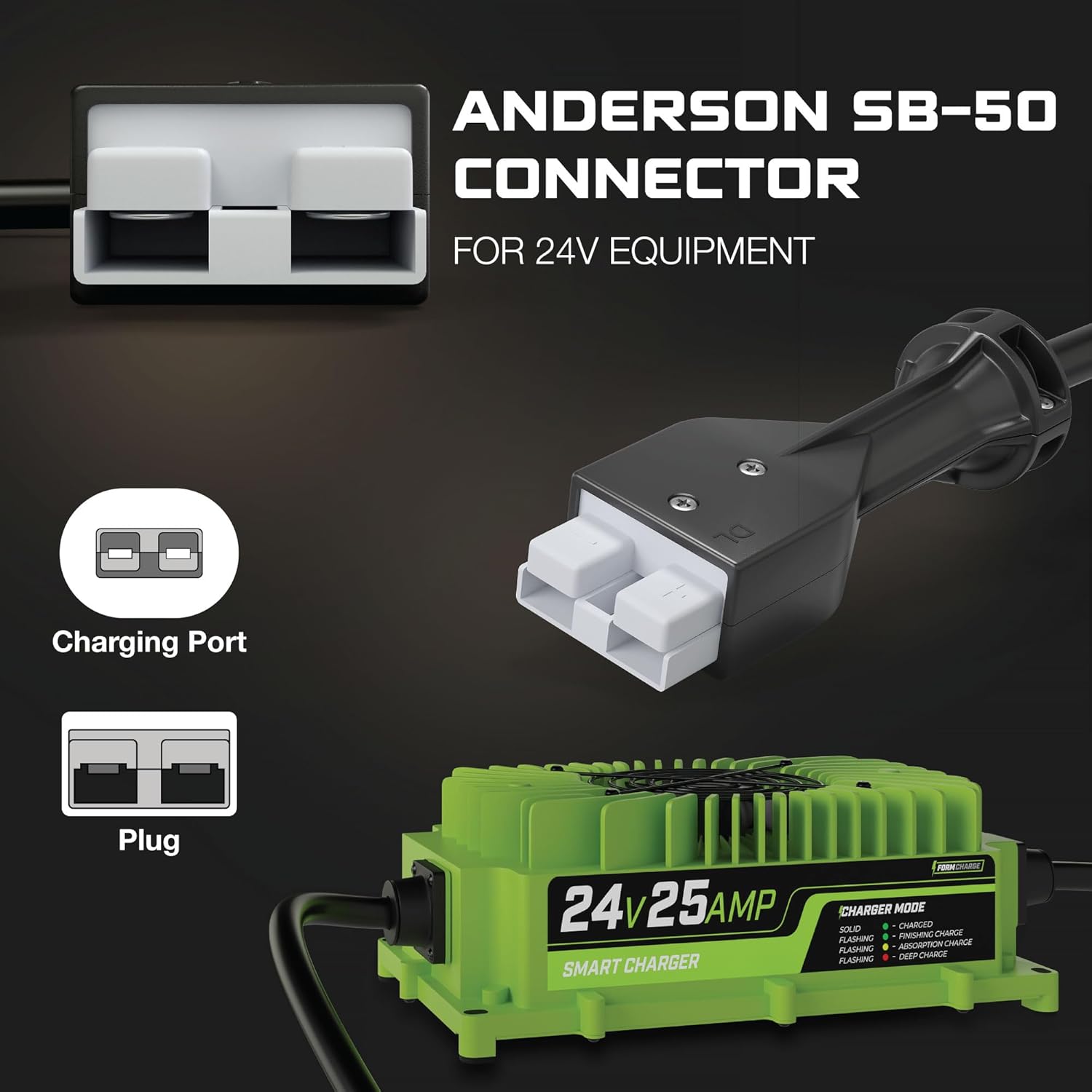 FORM 24 Volt Battery Charger for Genie Skyjack, JLG Scissor Lift, Forklift, Electric Pallet Jack, Floor Scrubber - 24V 25A (24V SB-50)