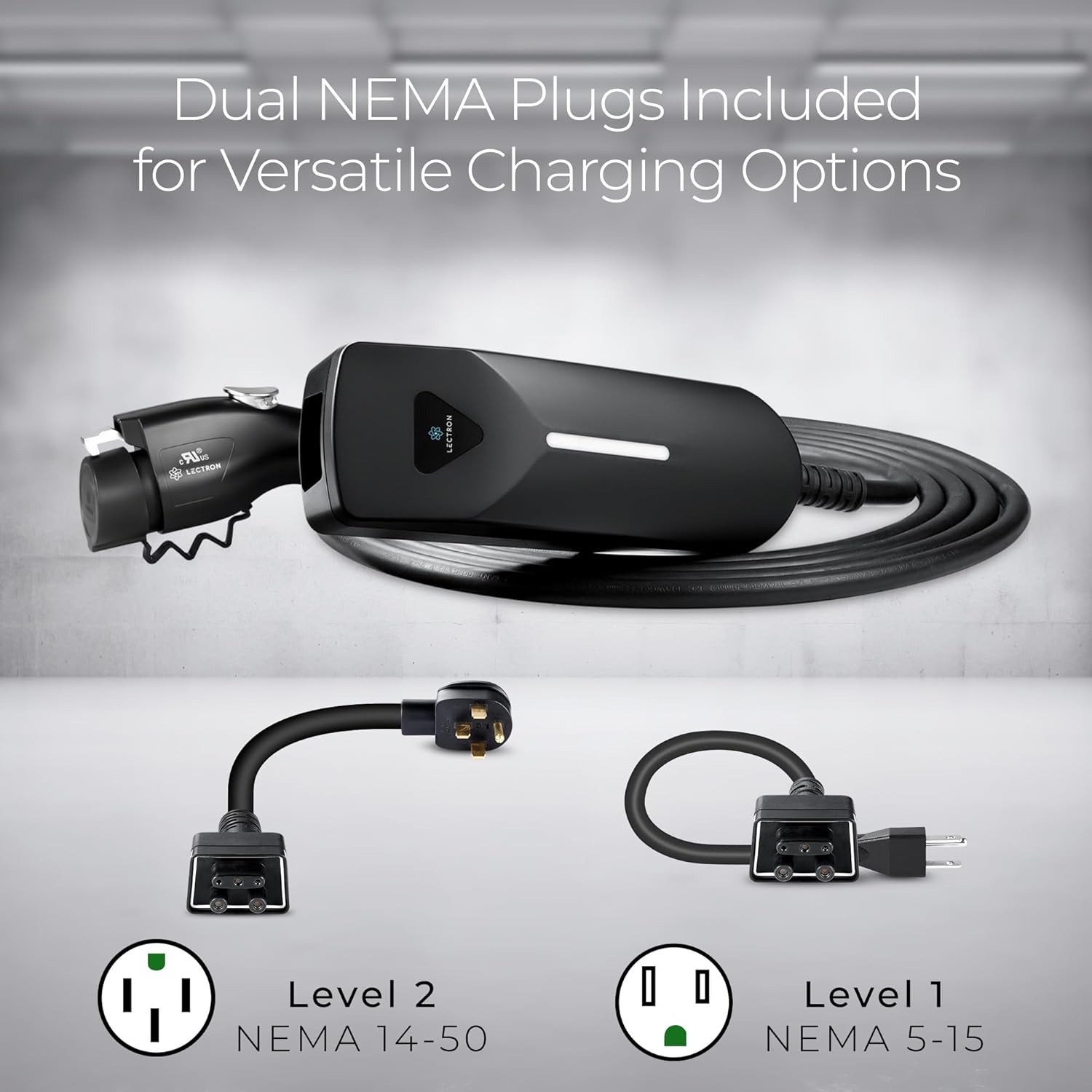 - UNIVERSAL CHARGING - This portable EV Charger offers interchangeable NEMA 5-15 and NEMA 14-50 plugs for flexible charging options; whether you have access to a standard household outlet or a high-power outlet, this charger has you covered