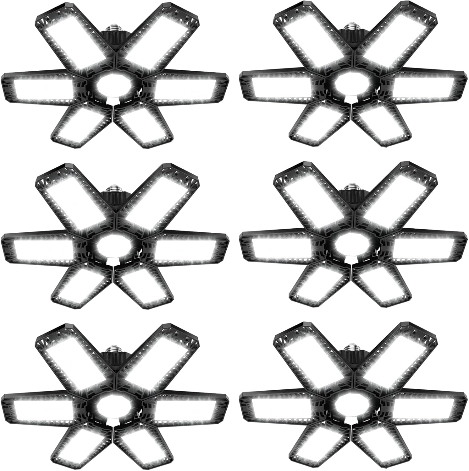ISKYDRAW Garage Lights Bulb - 6 Pack 200W Garage Lights Ceiling LED 20000LM 6500K Led Shop Light with 6 Deformable Panels, Screw in E26 E27 Socket Basement Lighting for Workshop Barn Attic