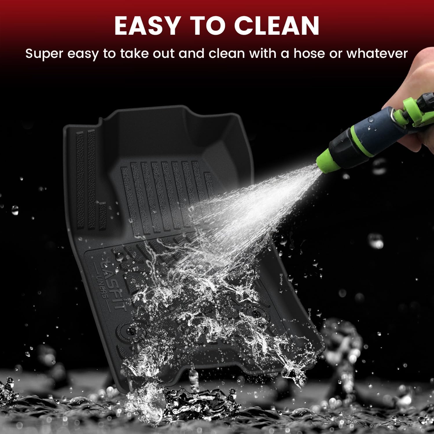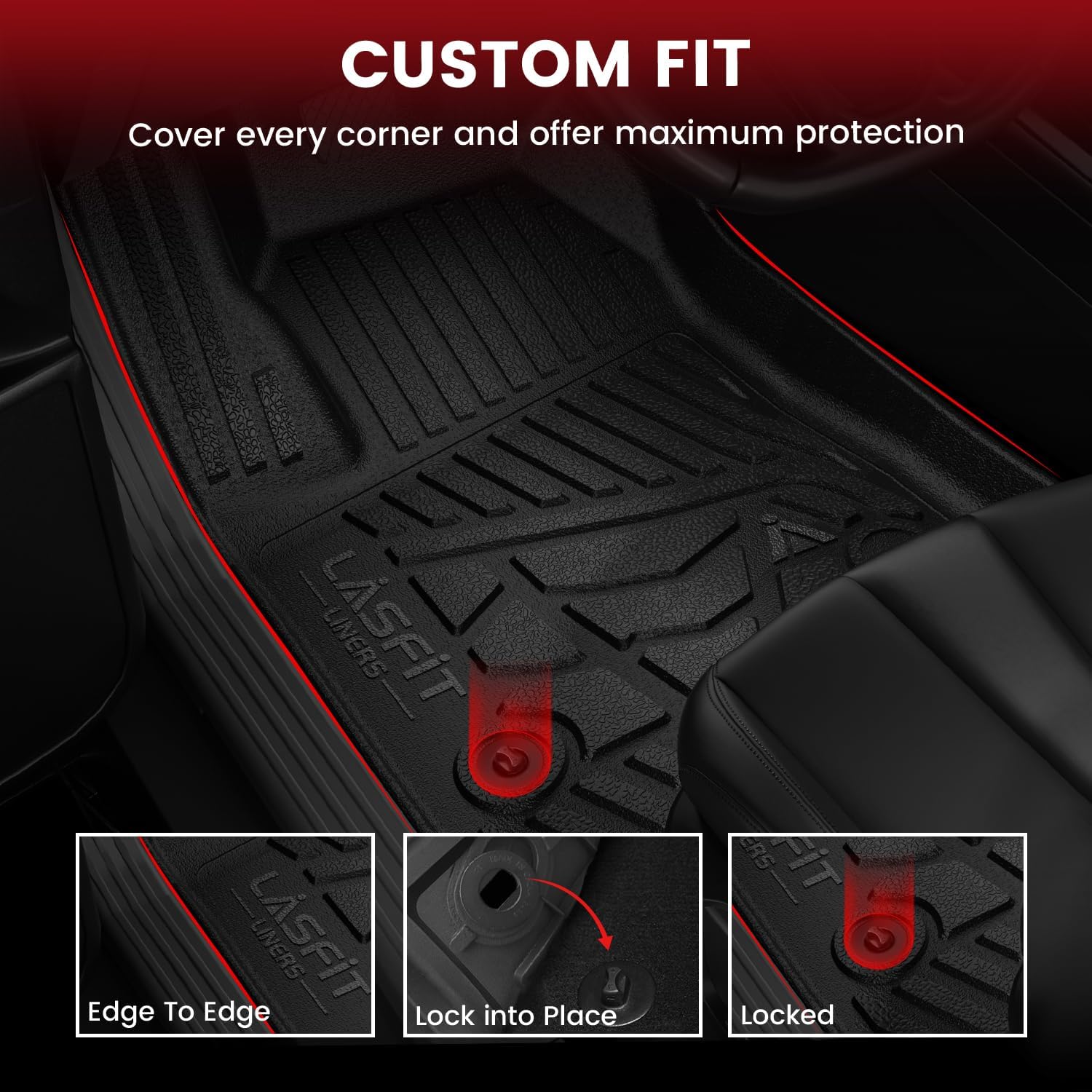 - ăDurable & Safe MaterialăLASFIT all weather floor mats use elastic TPE (Thermoplastic Elastomer), no foul odor is produced even at high temperatures, soft touch and exquisite finish. The floor mats for cars are skid-proof and recyclable.