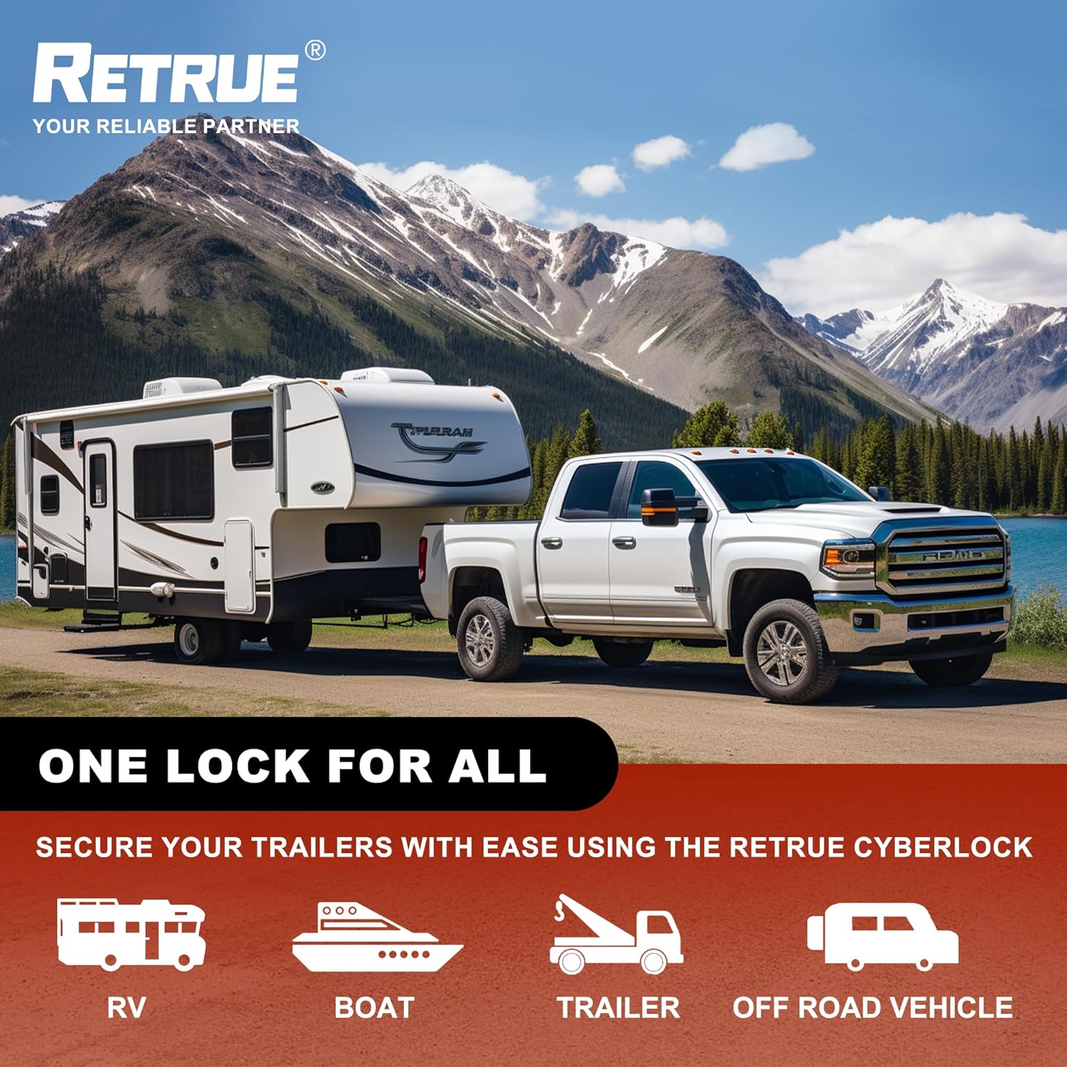 - EASY-TO-USE DESIGN: The RETRUE Cyberlock features an intuitive design that simplifies the locking and unlocking process. With 'One Push to Lock', it offers a simpler alternative to traditional trailer locks, eliminating the need for multiple turns—just a half-turn to unlock