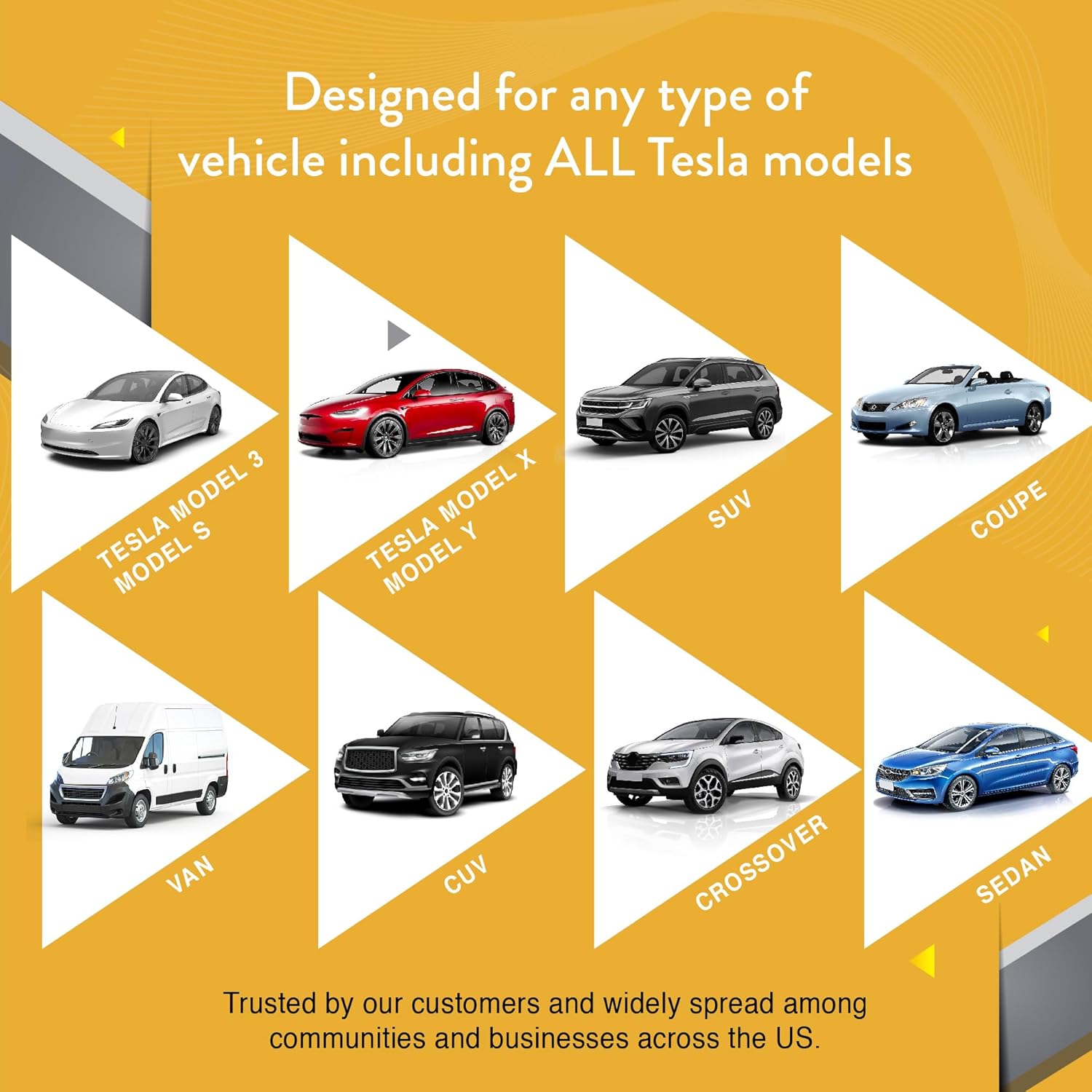- β UNIVERSAL - This kit is designed to fit any vehicle, including all Tesla models (Model S, Model 3, Model X, Model Y), as well as Sedan, Coupe, SUV, Truck, MPV, Hatchback, Crossover, Wagon, and more.