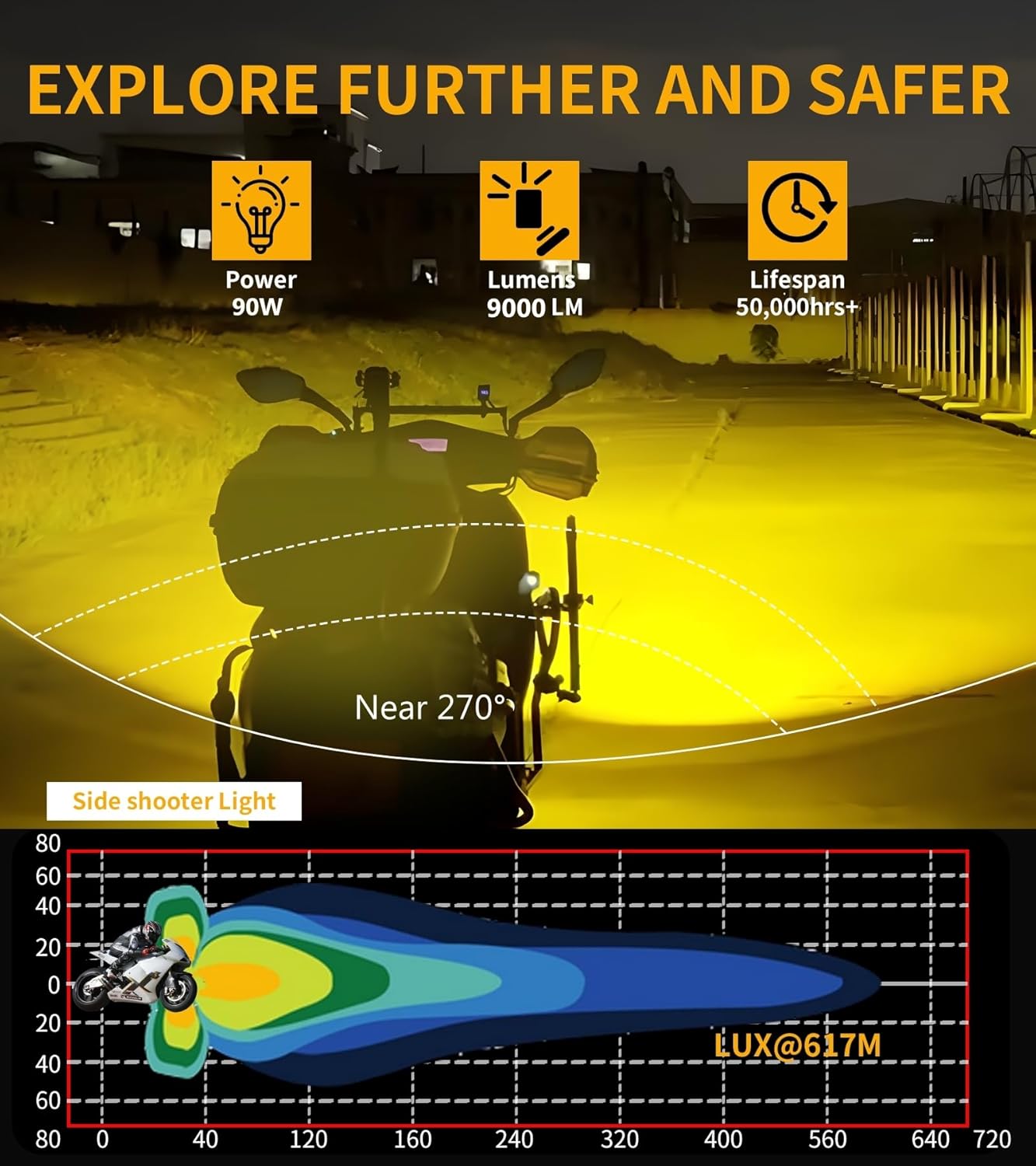 - Scientific Design Concept: Kewig motorcycle auxiliary led light is scientifically designed with high quality chips and high borosilicate optical lenses. The high quality chip gives it a high light transmission of up to 90W and 9000 lumens, the optical glass lens greatly improves the light throw and high focus of the driving light, whether it's a night or a rainy or foggy day, it's perfectly suited to provide the perfect beam of light for your off-road