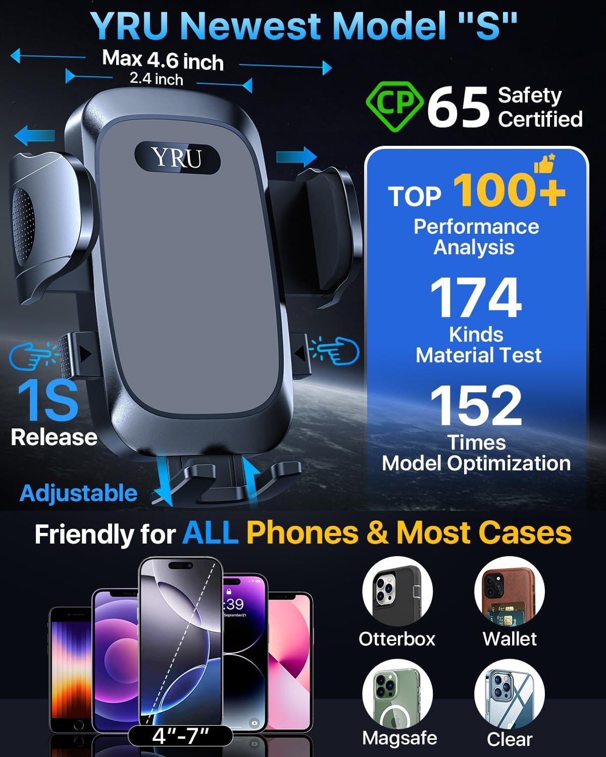 - 2025 Ultimate & High-End Car Holder, Trusted by 30,000+ Users: YRU 2025 upgraded car phone holder with 4 years of R&D passed 30,000+ users driving 900,000+ miles test, is a 3A-Grade reliable car mount, stable & durable. Got safely certified