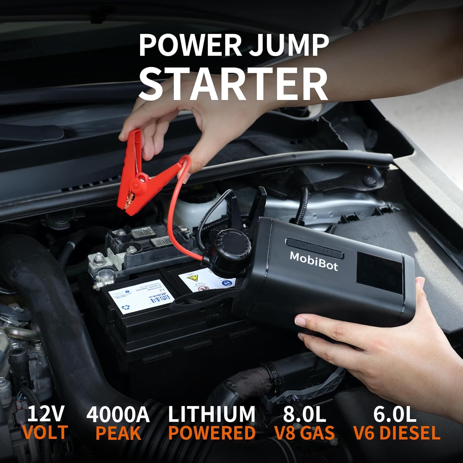 - [High Performance Car Jump Starter] Powerful and safe. With boosted 4000A cranking current, the car battery jump starter battery pack can instantly restart your 12V vehicles (specially for up to 8.0L gas/6.0L diesel) even at -4~140β, support more than 1000+ recharge cycles. This jump box for car battery standby for about 24 months, always ready to help.