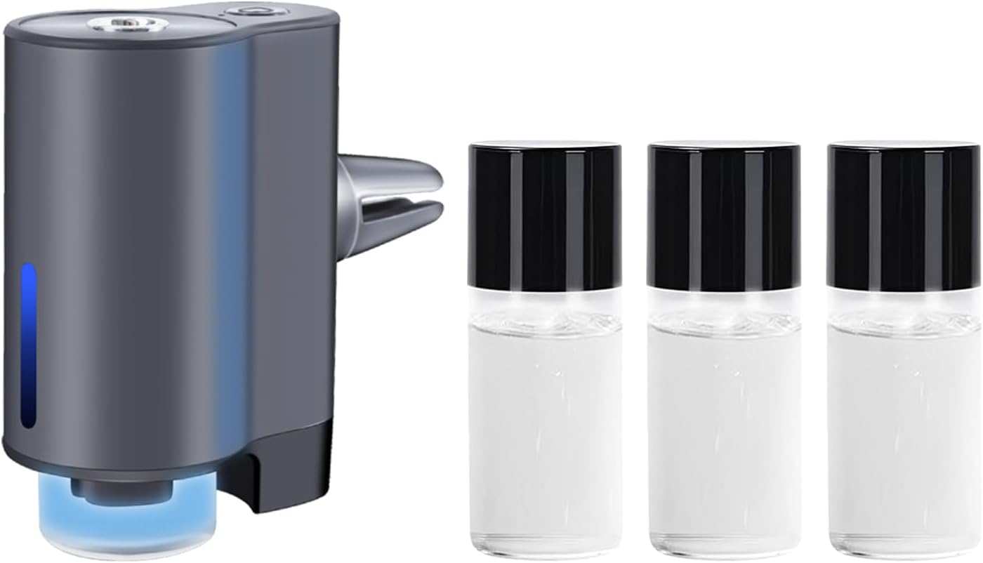 Auto-Aromatherapy Smart Car Air Freshener Diffuser with 3 Scent Options, Rechargeable Design, USB-Carger, and Easy to Install for Long-Lasting Freshness.(Grey)