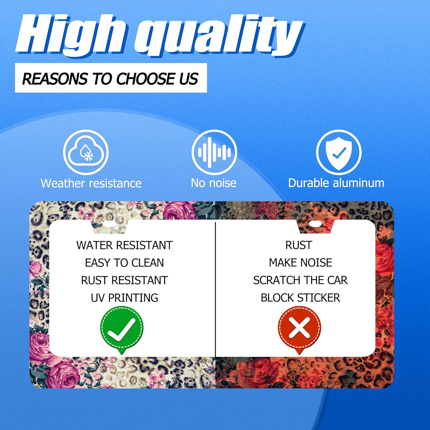 Rose Leopard Print License Plate Frame Vintage Floral License Plate Stainless Steel Funny License Plate Holder Cheetah Car Accessories Decoration with Screws Fits Standard Vehicles Size 12.3" x 6.3"