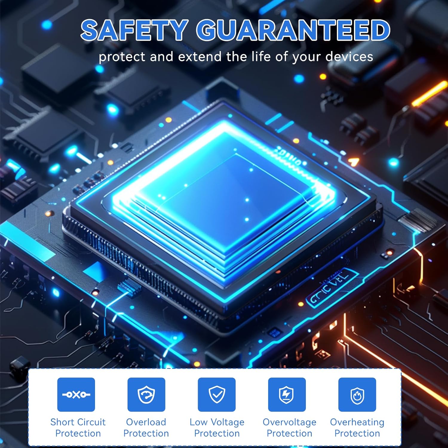 - Multi-Protection 12V Automobile Inverter :Cooling Fan,and Mini Slip Fuse to protect against Over Voltage, Low Voltage,Overload ,Short Circuit, Over Heat.