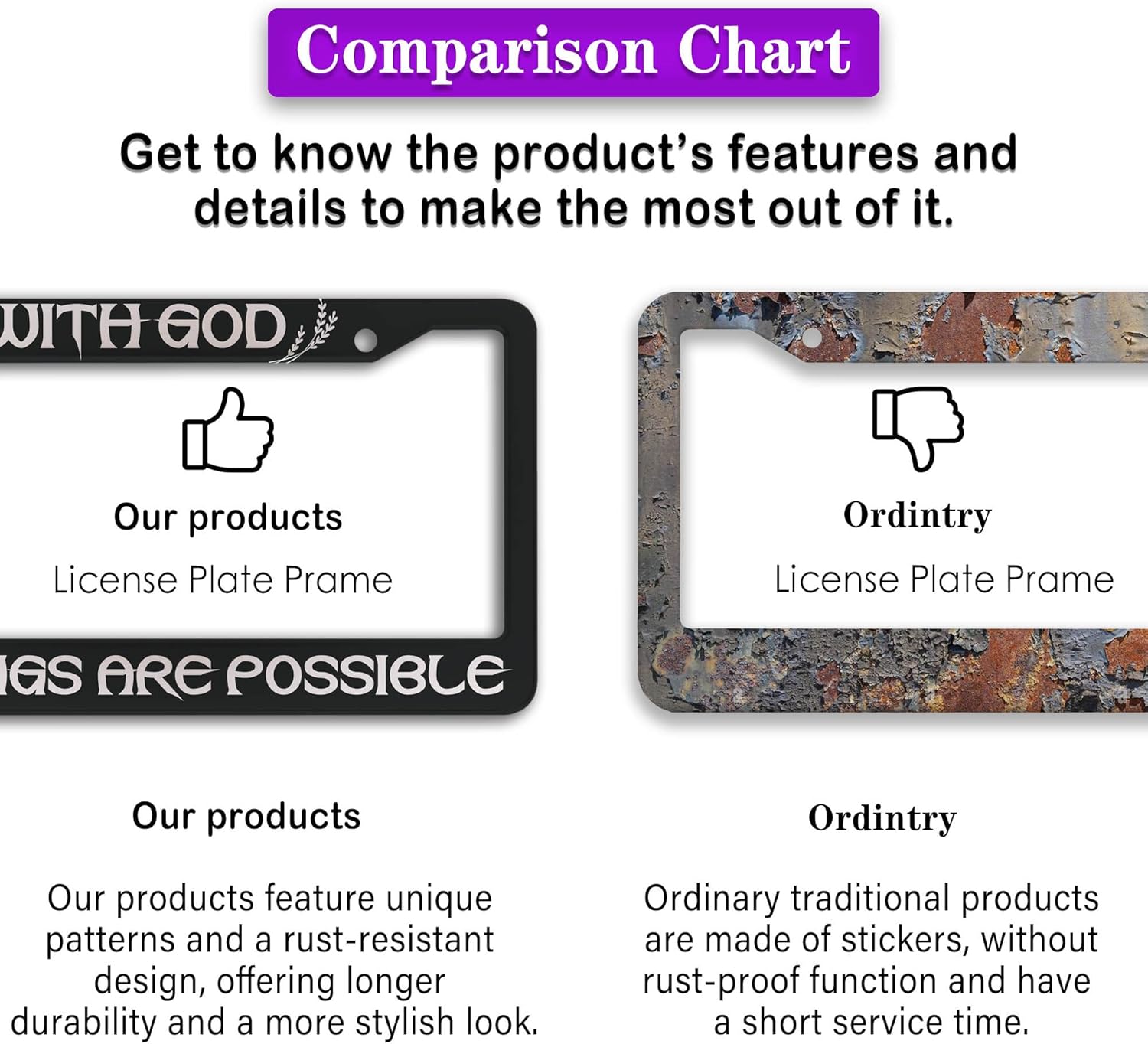 License Plate Frame Black and White Front License Plate Bracket with God All Things are Possible Universal Aluminum Car Accessory 2 Pack with Screw Covers Set