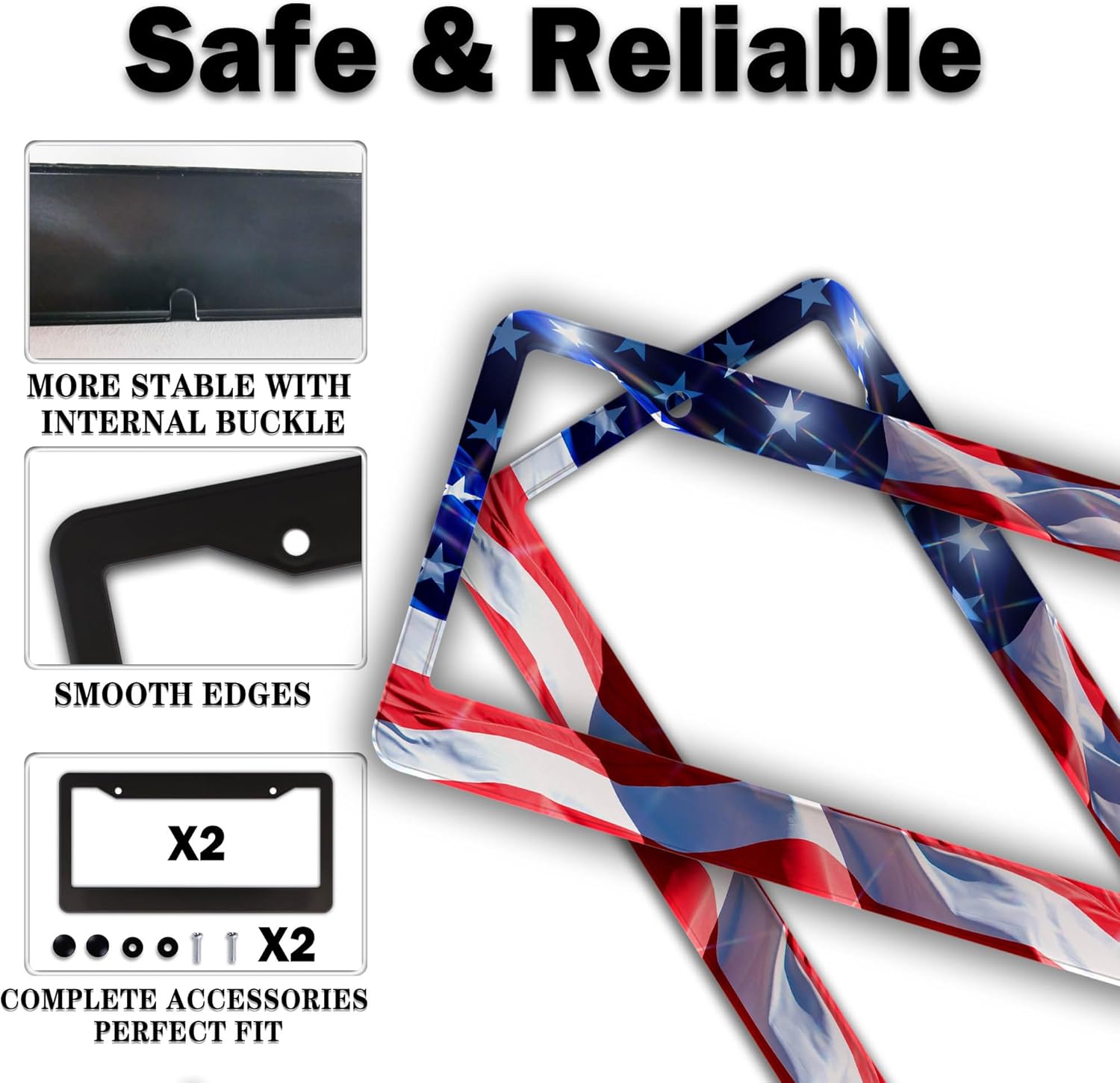 License Plate Frames for Men Multicolor Car Plate Frame for Women American Flag Aluminum Metal Car Accessory 2 Pack with Screw Covers Set