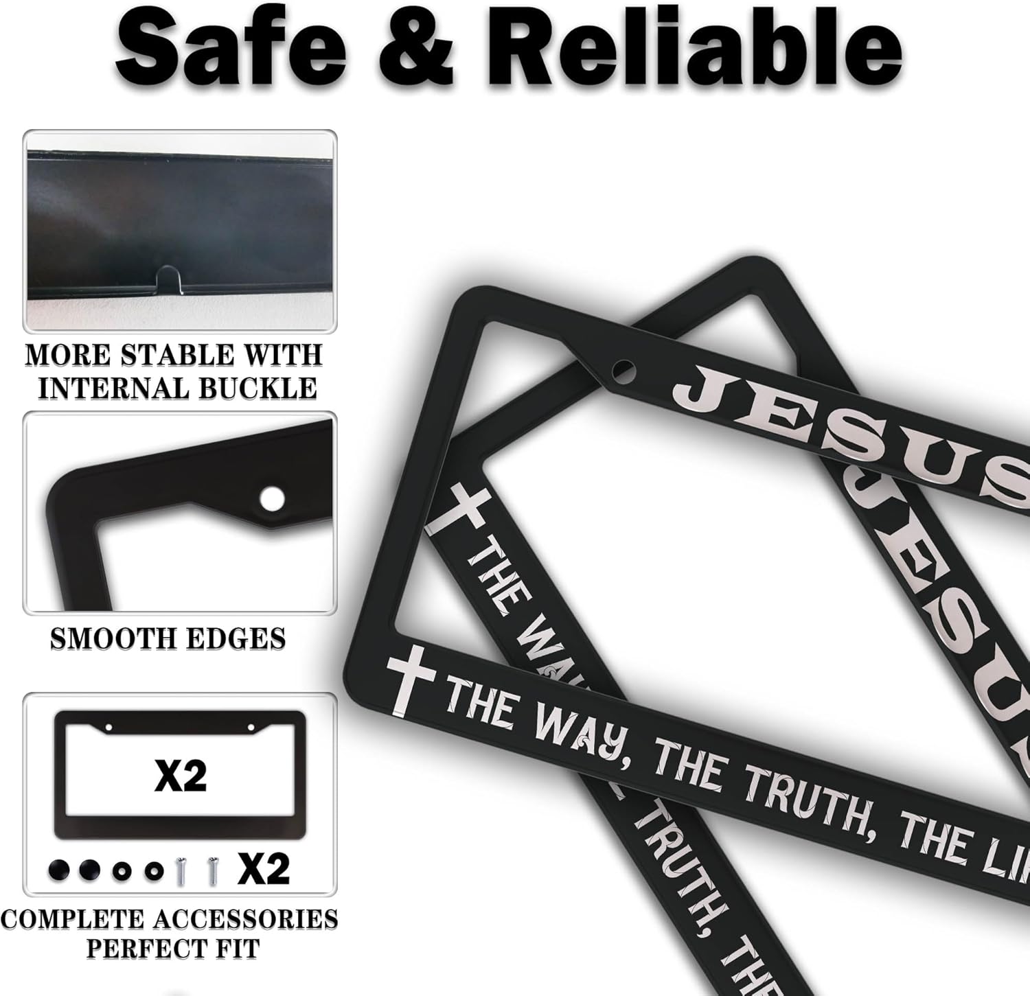 License Plate Frames Black and White Car Plate Frames Jesus The Way The Truth The Life Universal Aluminum Car Accessory 2 Pack with Screw Covers Set