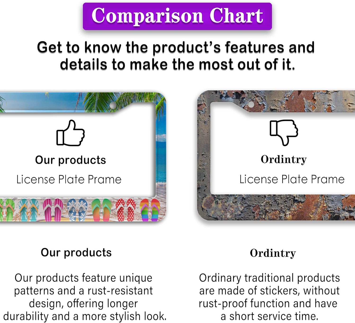 License Plate Frames Multicolor Car License Plate Frame Hawaii Beach Flip Flops Aluminum Metal Car Accessory 2 Pack with Screw Covers Set