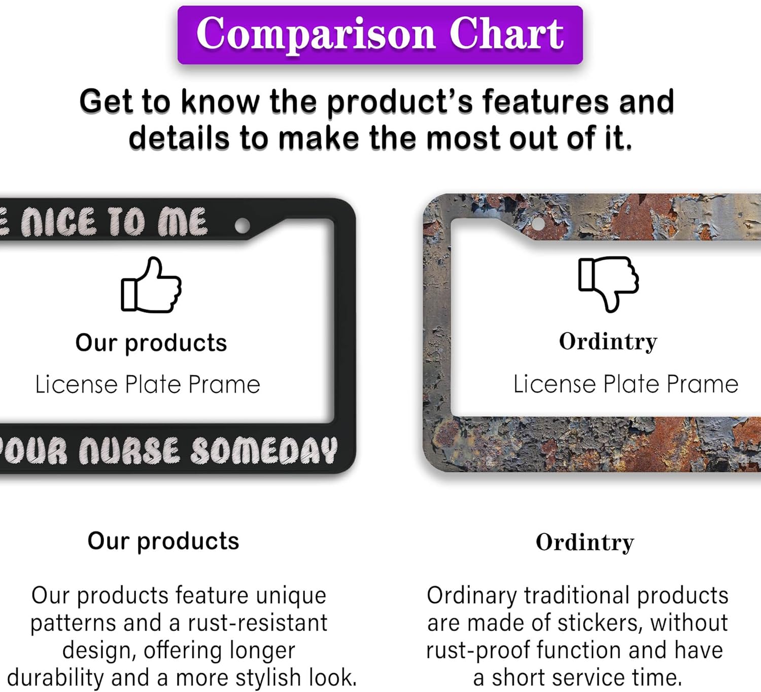 - FUNNY DESIGN: Featuring a unique and customized design, this license plate frame creates an eye-catching and bold statement for your vehicle. Not only does it add a touch of personality to your car, but it also makes for a great holiday gift, souvenir, or decorative piece for family, friends, and colleagues. Elevate your vehicle's style while sharing a laugh!