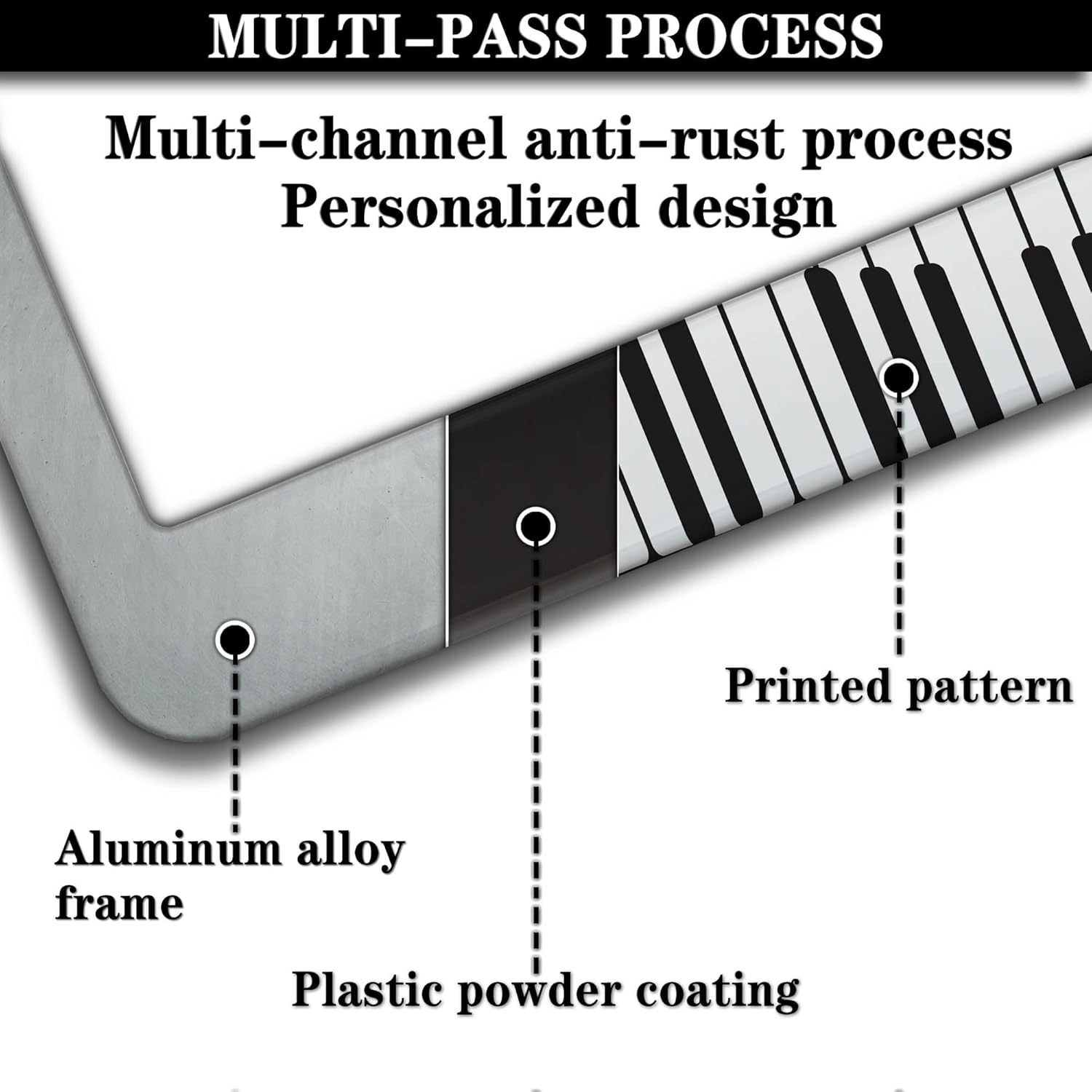 - ALUMINUM FRAME: This License Plate Frame is crafted from high-quality aluminum that is resistant to corrosion, rust, and harsh weather conditions. Its rugged reliability design ensures a long lifespan, making it capable of withstanding car washes and extreme weather, providing you with a reliable and stylish solution for your vehicle.