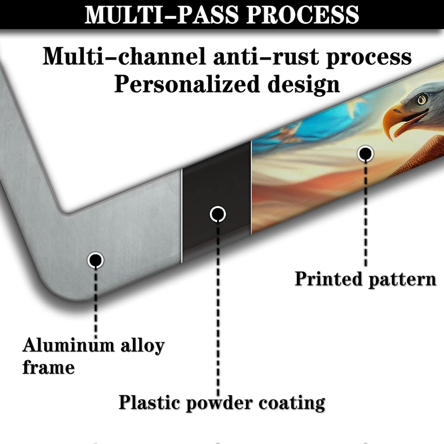 Automotive Exterior Accessories Multicolor License Plate Frames American Flag Eagle Aluminum Metal Car Accessory 2 Pack with Screw Covers Set