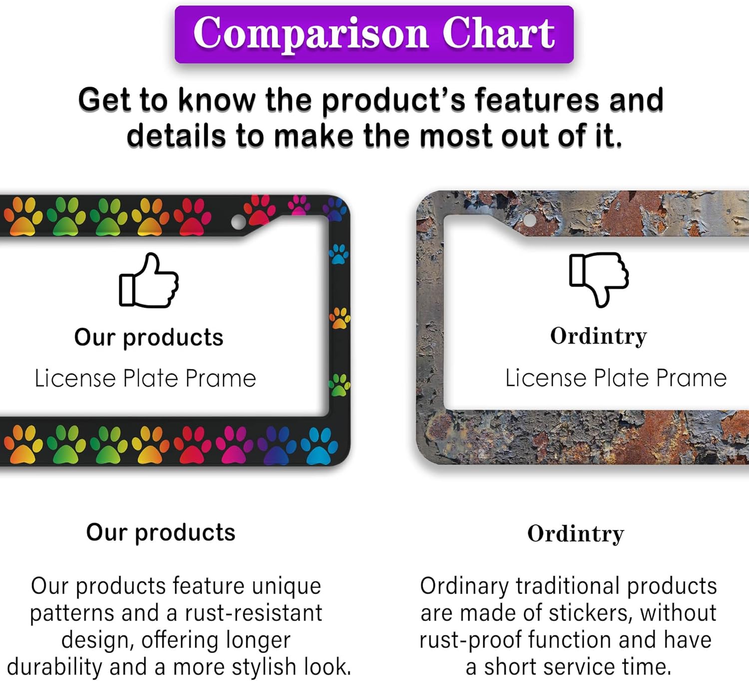 License Plate Holder Rainbow License Plate Frames Colors of The Rainbow Dog Paw Universal Aluminum Car Accessory 2 Pack with Screw Covers Set