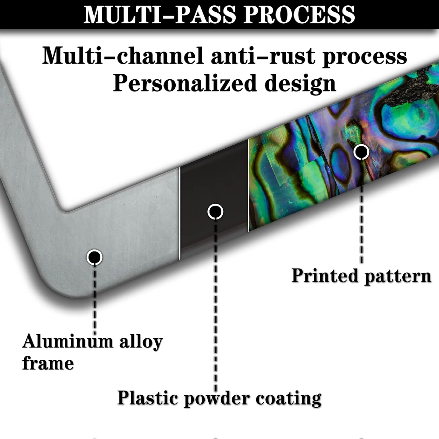 License Plate Frames Multicolor Fun License Plate Frame Cover Faux Abalone Texture Universal Aluminum Car Accessory 2 Pack with Screw Covers Set