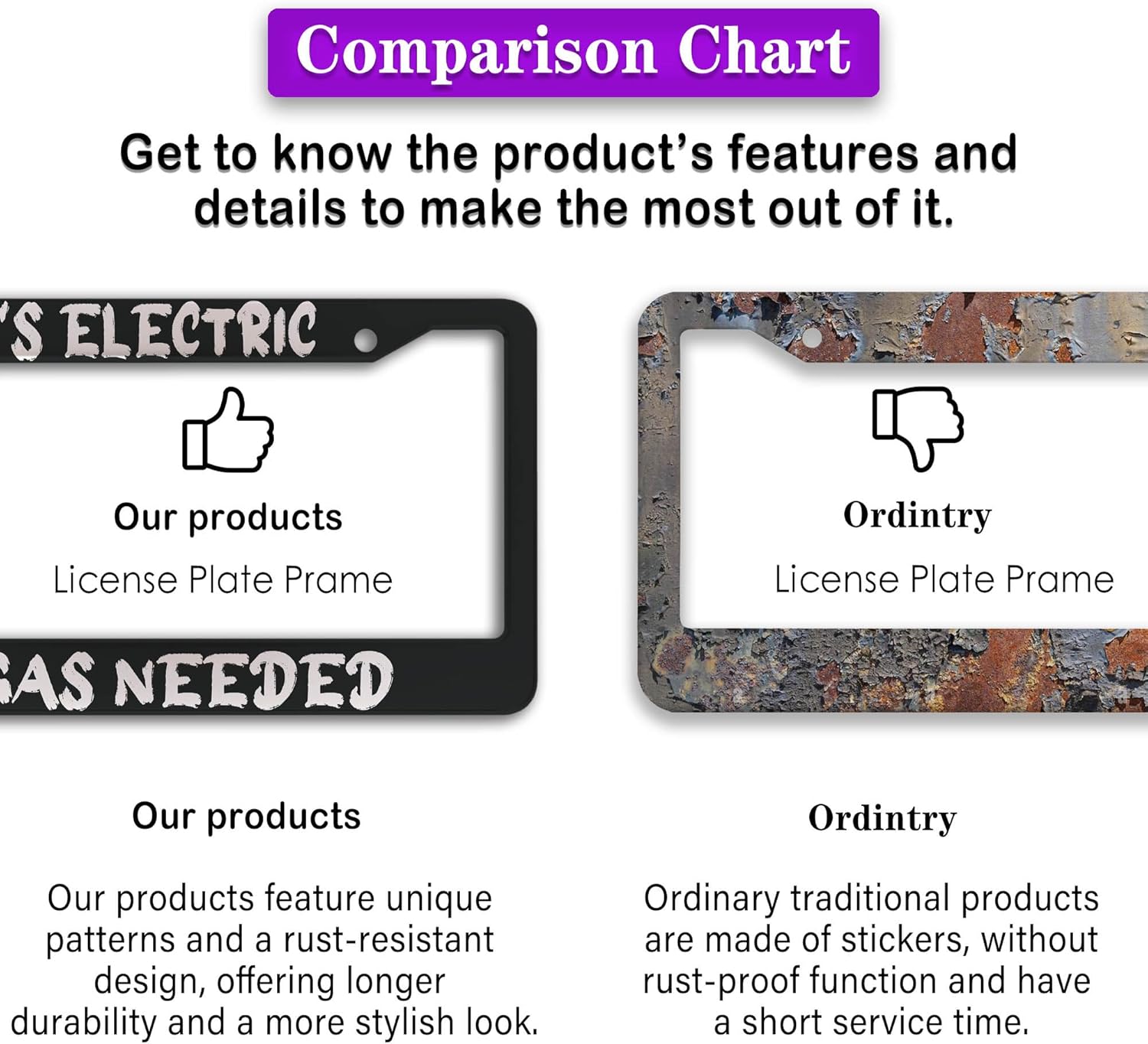 - FUNNY DESIGN: Featuring a unique and customized design, this license plate frame creates an eye-catching and bold statement for your vehicle. Not only does it add a touch of personality to your car, but it also makes for a great holiday gift, souvenir, or decorative piece for family, friends, and colleagues. Elevate your vehicle's style while sharing a laugh!