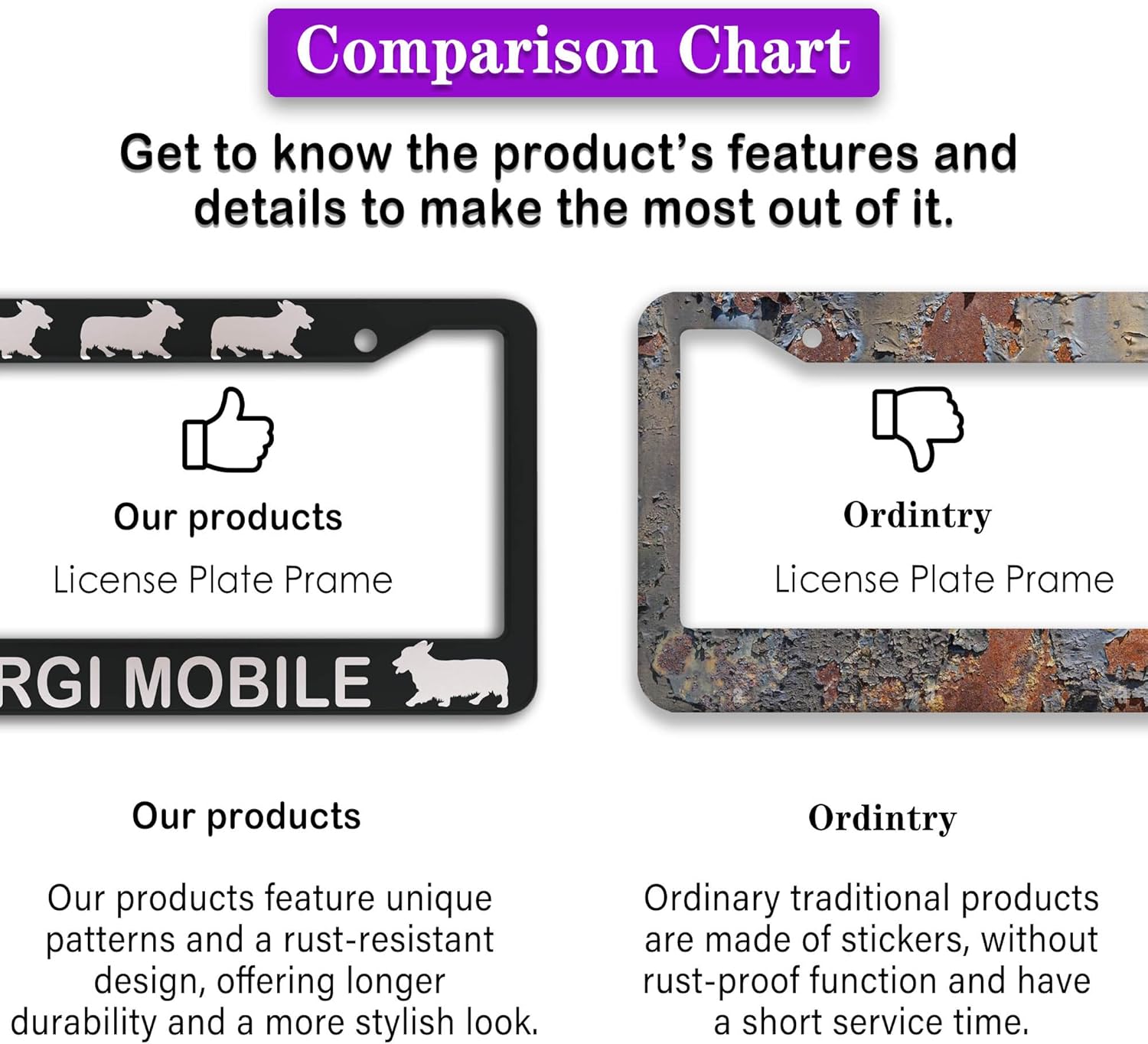 License Plate Frames for Women Black and White License Plate Frame for Men Corgi Mobile Aluminum Metal Car Accessory 2 Pack with Screw Covers Set