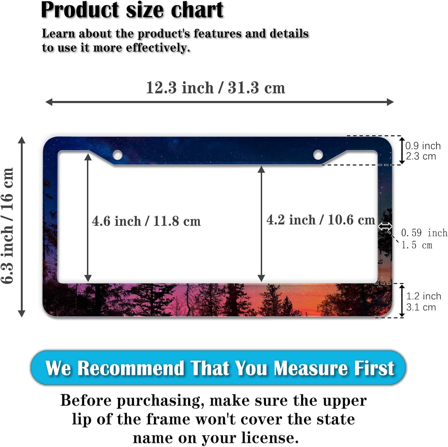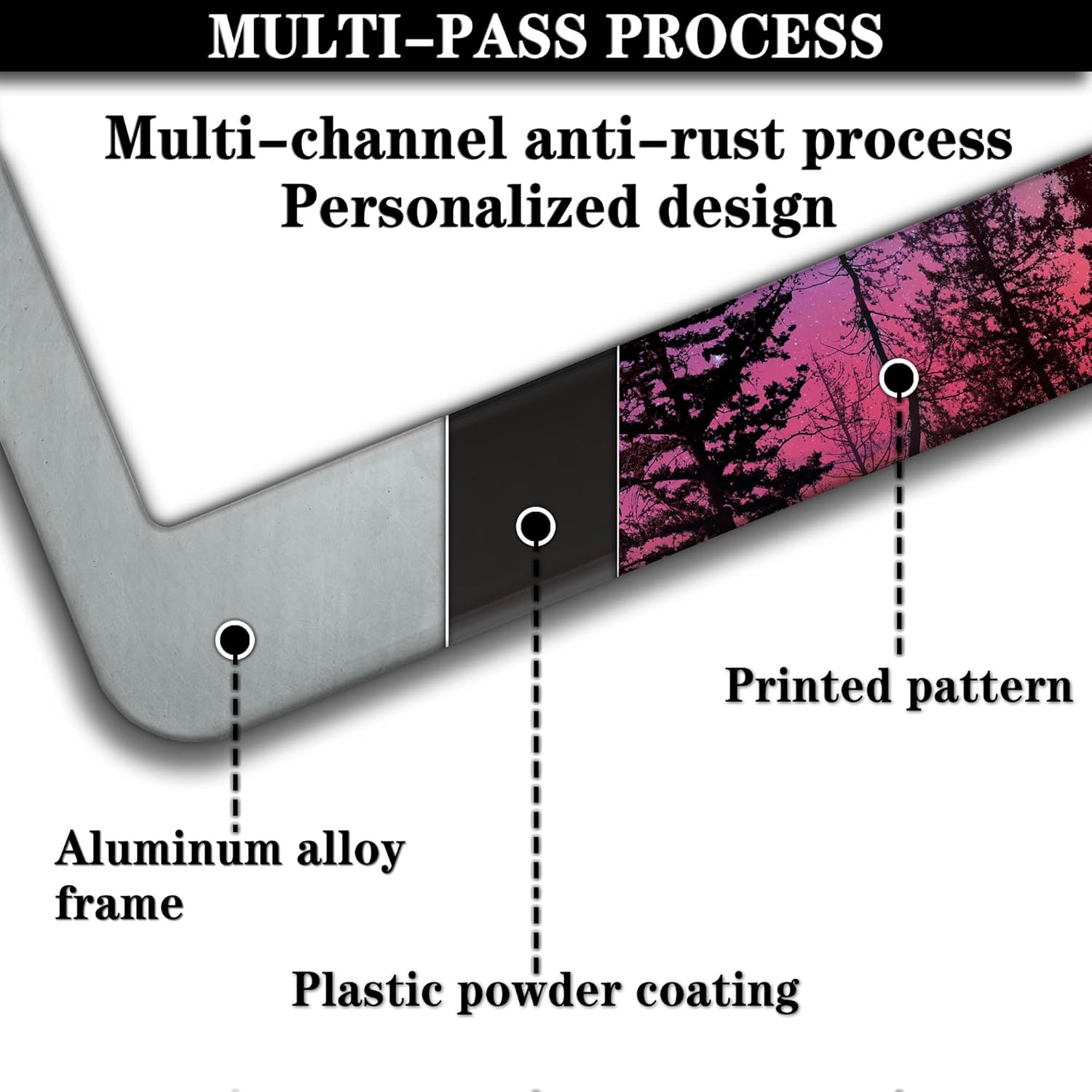 Car Plate Frame for Women Multicolor License Plate Frames for Men Forest Night Sky Universal Aluminum Car Accessory 2 Pack with Screw Covers Set