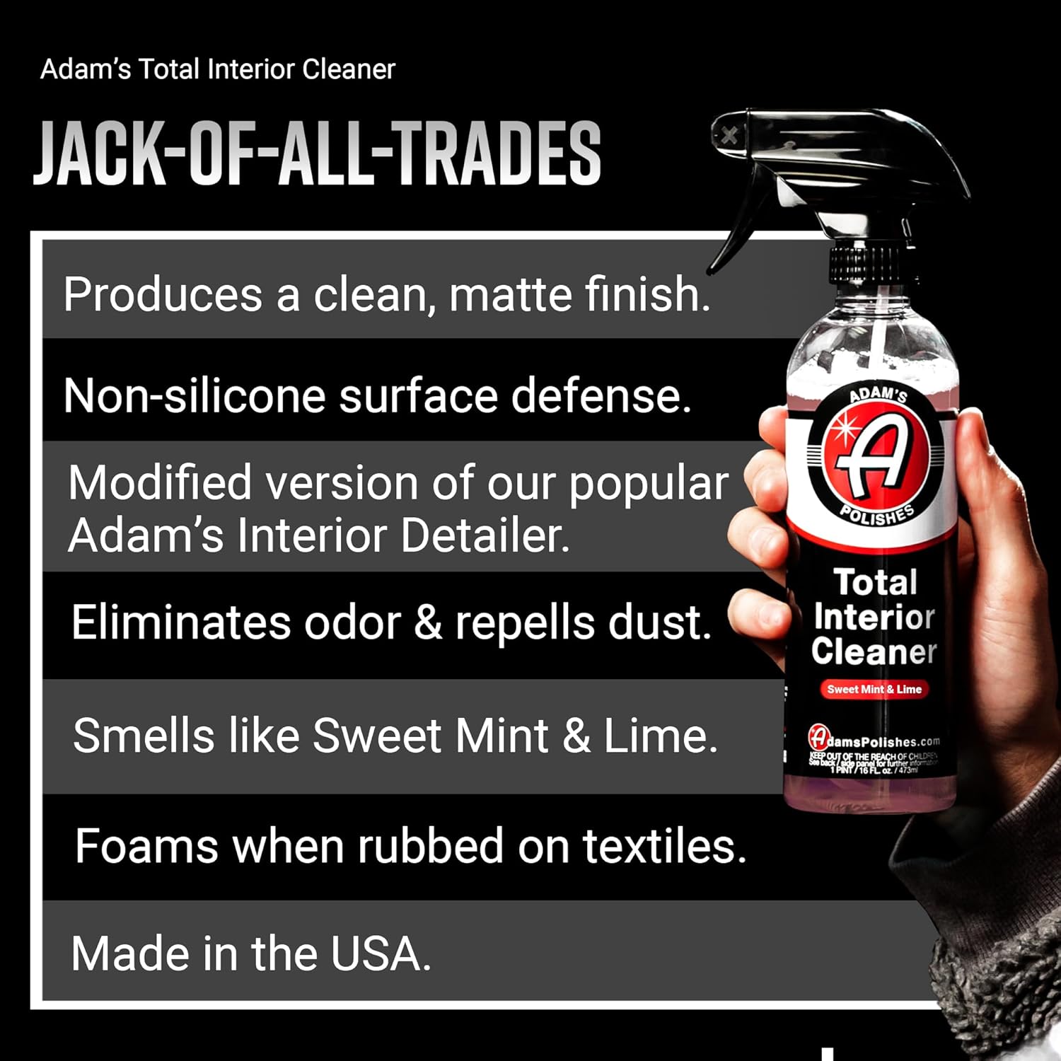 Adam's Polishes Total Interior Cleaner & Protectant, Quick Detailer & SiO2 Protection, Ceramic Infused, Anti-Static, OEM Finish, For Leather, Vinyl, Plastics, Glass & More