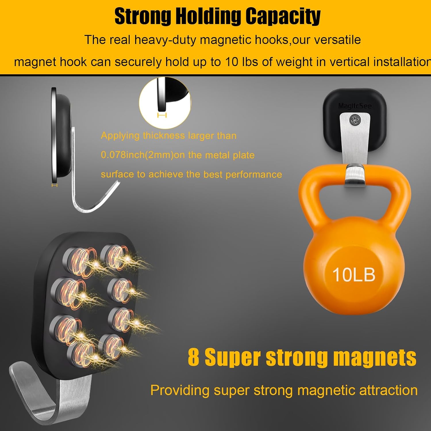 - Strong Holding Capacity: Upgraded design includes 8 magnets can securely hold up to 10 lbs of weight in vertical installation, providing a reliable and convenient hanging solution for various items in your home, office, RV,cruise workshop, or other spaces