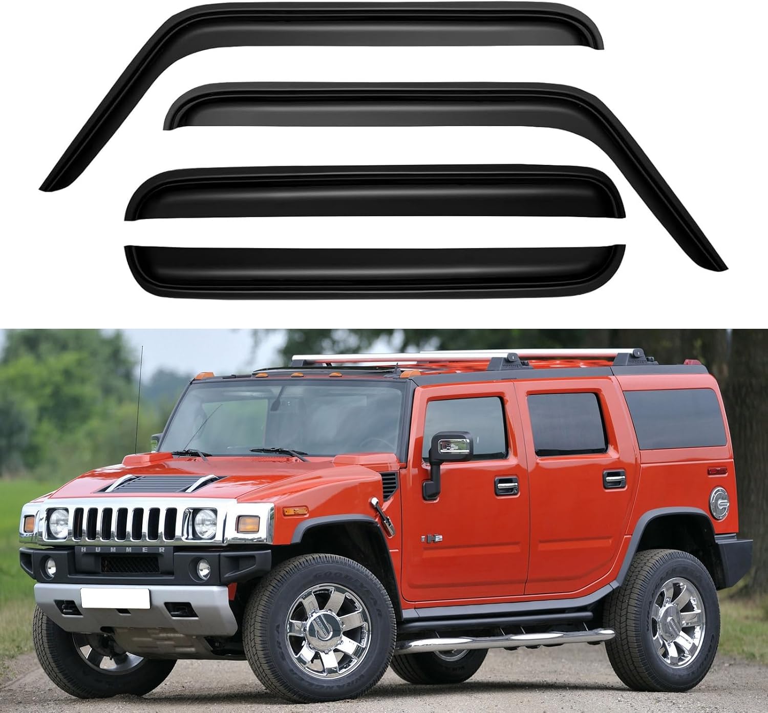 - ăPerfect FităYQAUTEC 4Pcs Out-Channel Window Visors Rain Guards Shield fit for 2003 2004 2005 2006 2007 2008 2009 03 04 05 06 07 08 09 Hummer H2, Side Window Vent Wind Deflectors Visors Shades.
