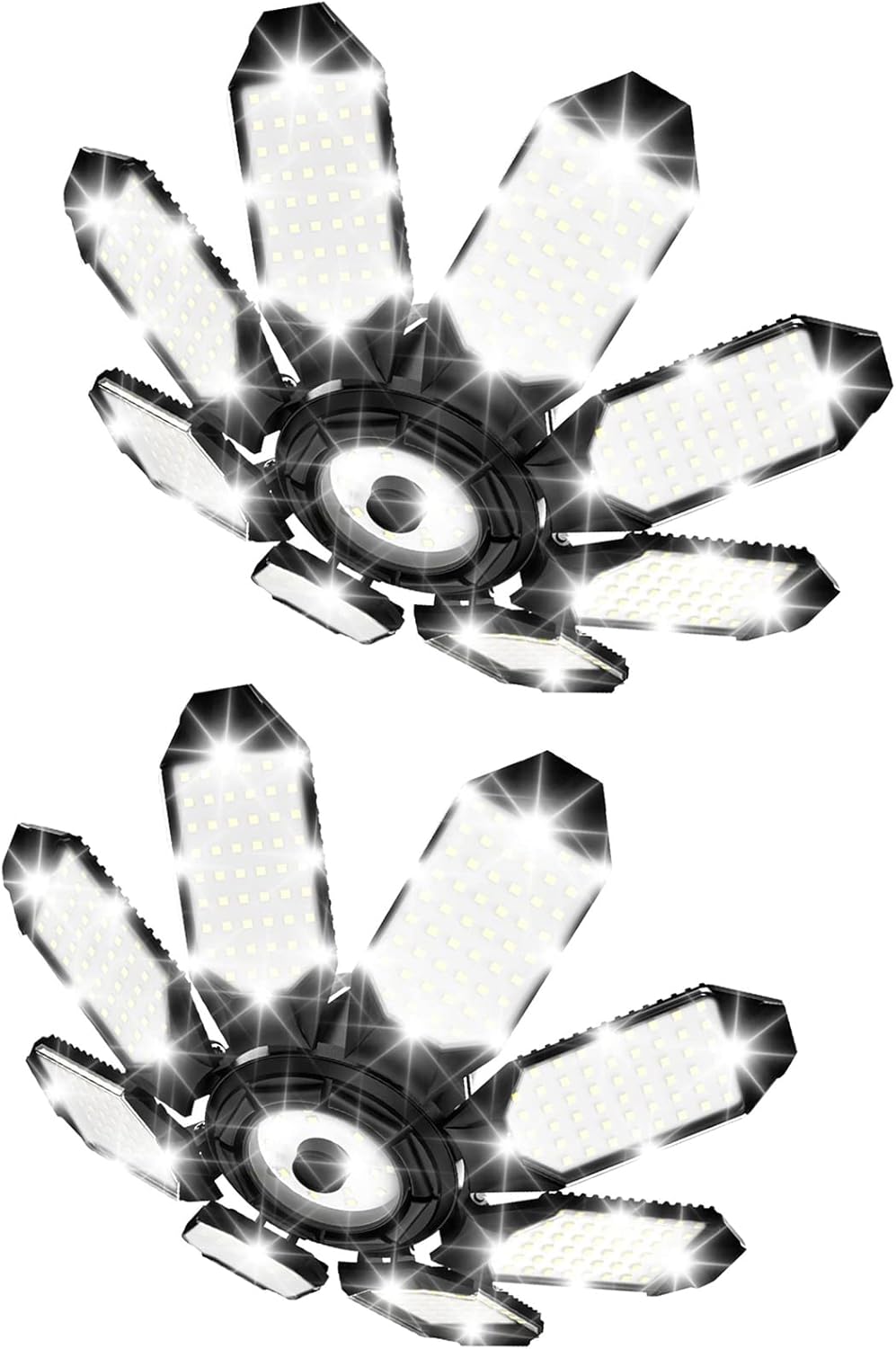 TANBABY 260W LED Garage Lights 2 Pack, Total 52000LM Deformable Best Ceiling Light with 8+1 Panels, E26/E27 Screw in Bulbs for Basement, Attic