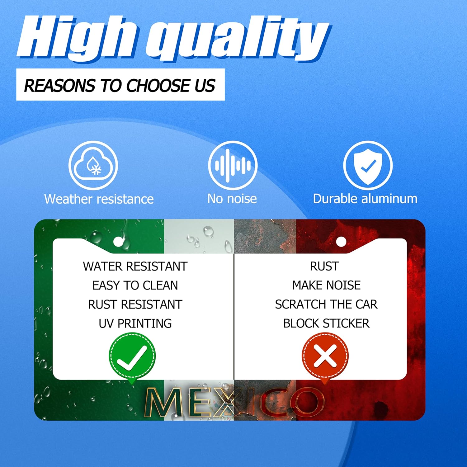 Mexico Flag License Plate Frame Personalise Mexican Funny License Plate Stainless Steel Flag License Plate Holder Car Accessory with Screws Car Decoration 12.3" x 6.3" for Men Women