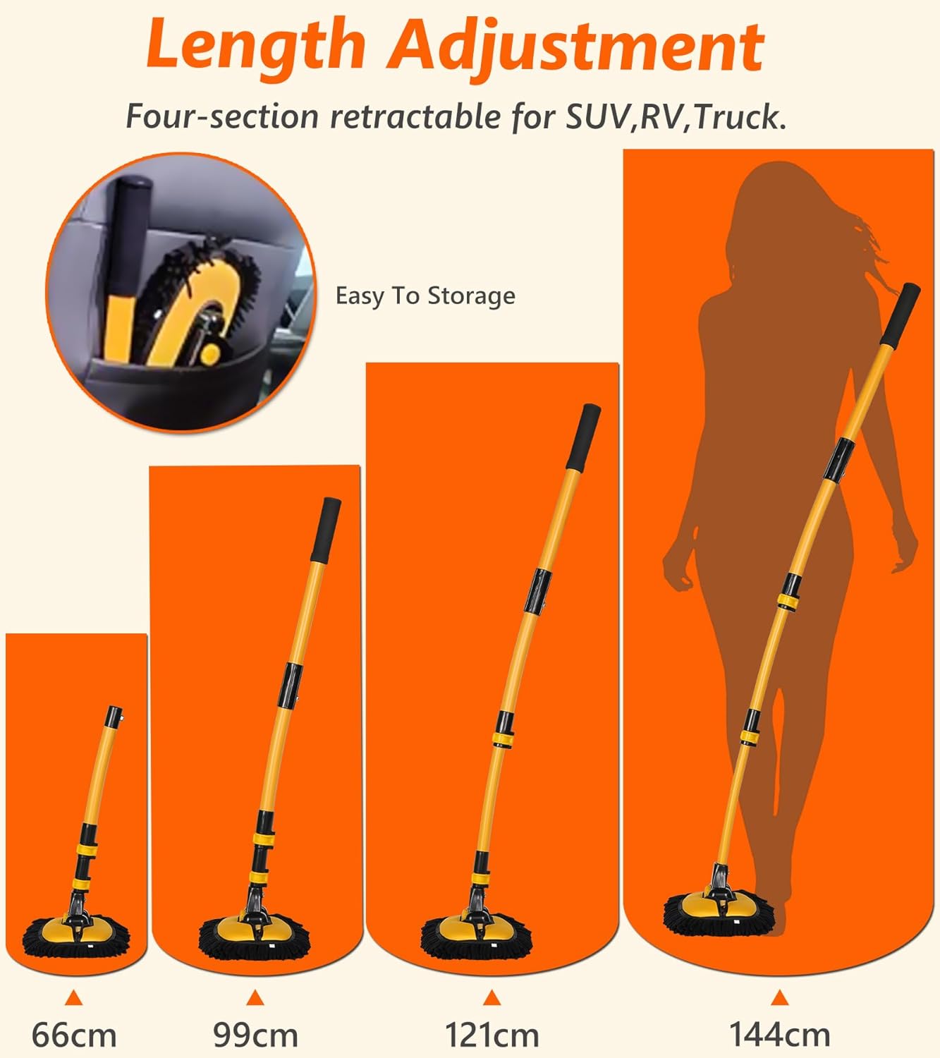 - Extendable and Lightweight: The adjustable and extendable handle of our car mop makes it convenient for various cleaning tasks. Whether you need to clean your car, outdoor equipment, or household surfaces, this mop is versatile and adaptable to meet all your cleaning needs. Additionally, its lightweight construction ensures easy maneuverability and reduces fatigue during prolonged use.