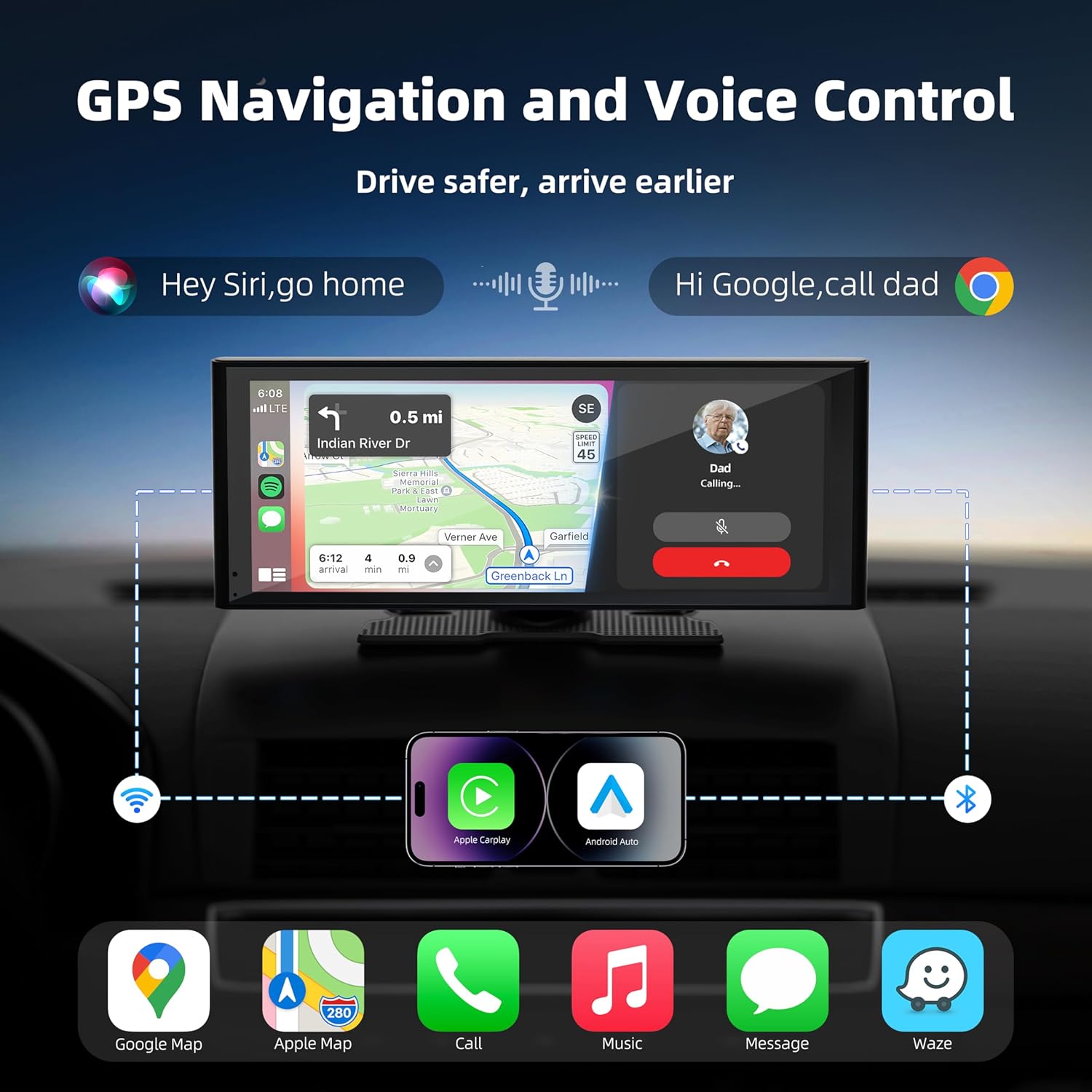 - 10.26-Inch Wireless CarPlay and Android Auto Screen:Seamlessly integrate Apple CarPlay and Android Auto into this 10.26-inch smart screen for car for hands-free access to maps, music, calls, and more. This car play screen supports wireless connections, allowing you to connect your smartphone via Bluetooth and WiFi without needing to download additional software.