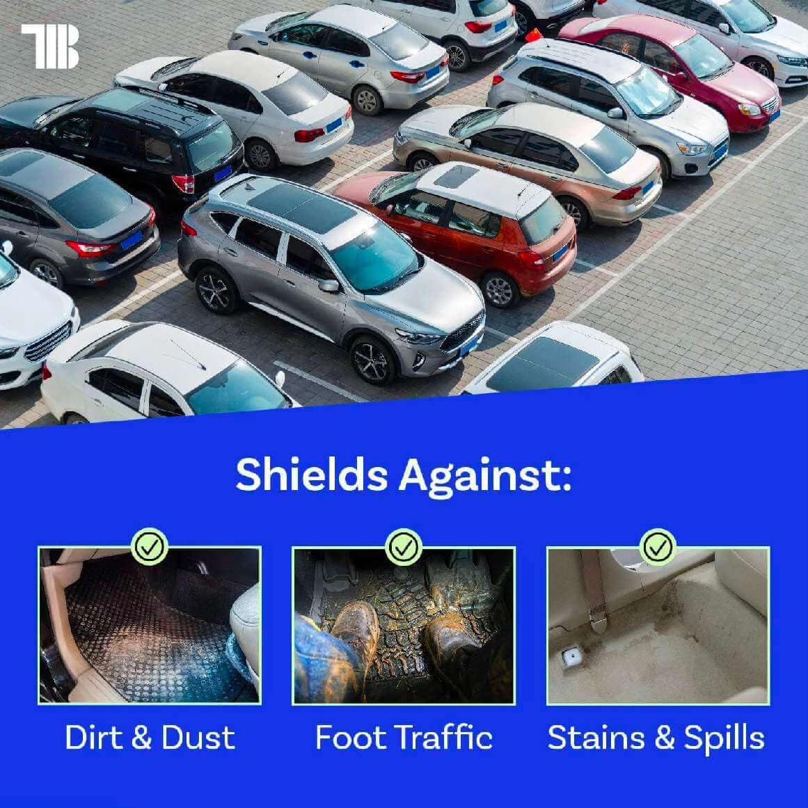 - VERSATILE: Our adhesive plastic carpet protector can be used on a variety of vehicles such as cars, RVs, boats, and more. These car floor protector sheets are also versatile in the ways they can be utilized. Whether shielding against spills during daily commutes or protecting against dirt from outdoor adventures, the dealer mats are adaptable and ensure consistent protection for your car's interior.