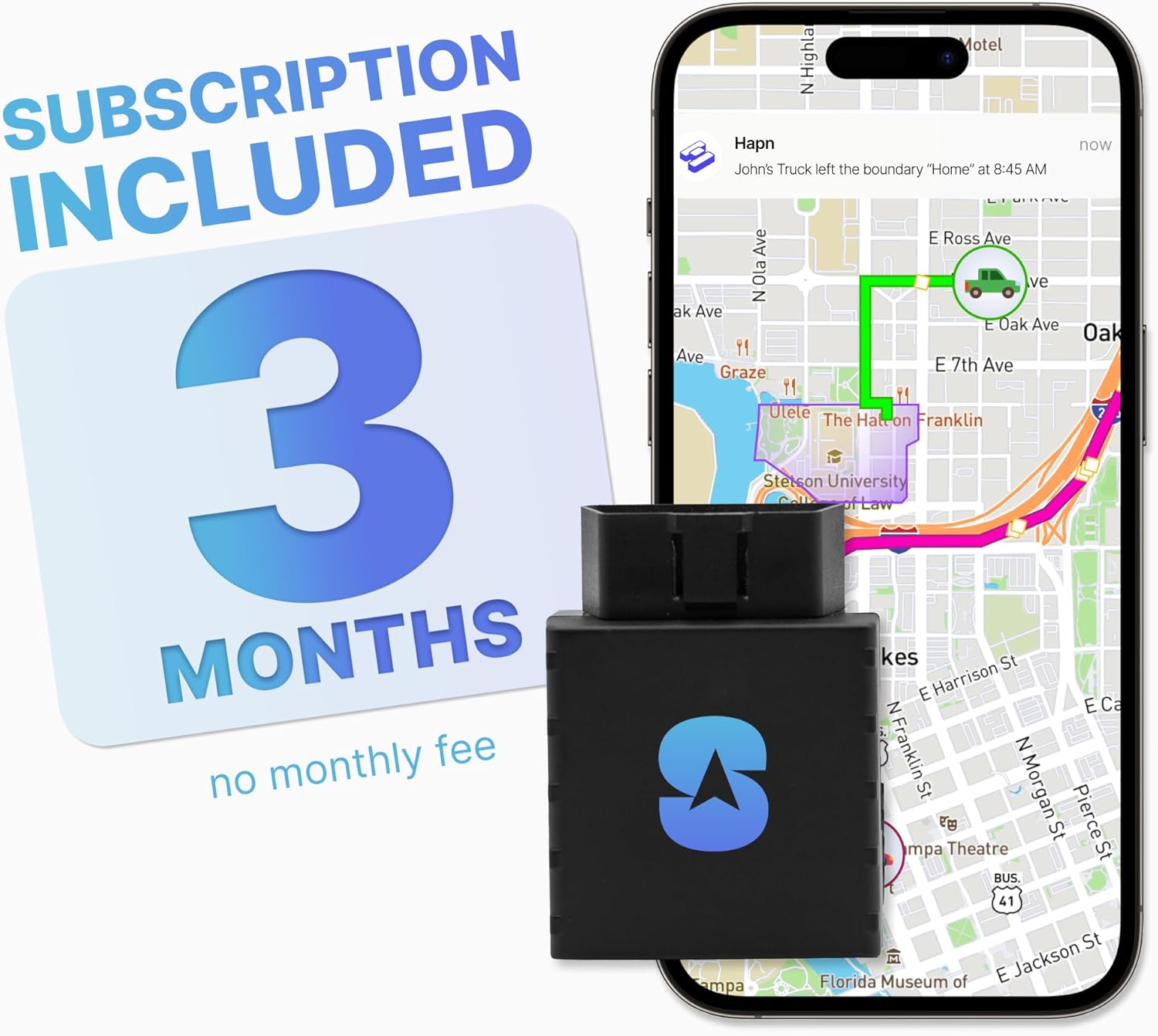 - CUSTOM BOUNDARIES / GEO-FENCING: Get alerts when the tracker enters or leaves a specific boundary area or get speed notifications if your teen driver is traveling too fast.