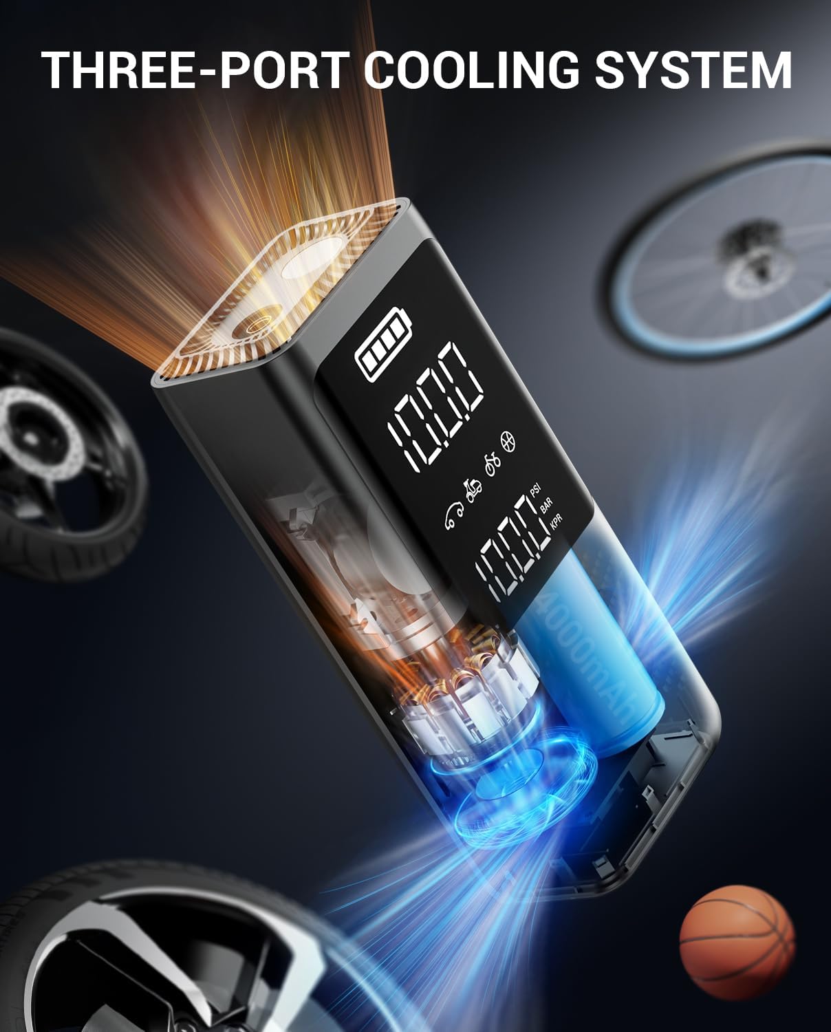 - Versatile Inflation Modes & Precise Monitoring: With 4+ N modes for pumping cars, motorcycles, bike, balls, and more, the AP18 air compressor portable lets you easily switch between PSI, BAR, and KPA. The 3.7 inch dual LCD screen provides accurate readings down to ±0.5 PSI, offering precise monitoring of your tire pressure.