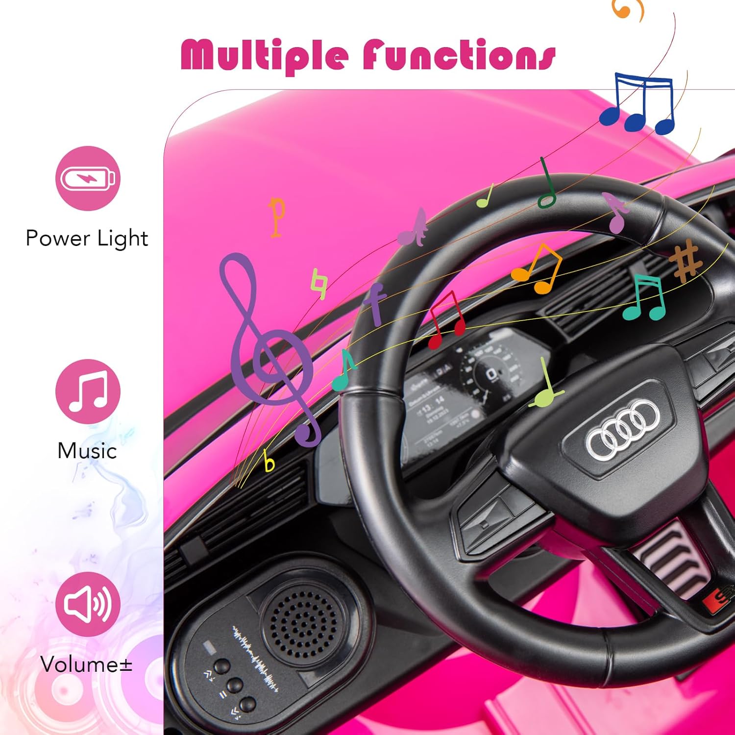 - Multiple Attractive Function: The kids ride on car comes with forward/backward switch, built-in music and volume adjustment button to provide extra riding fun for kids. This remote control car for toddlers provides a satisfying soundtrack to accompany every adventure.