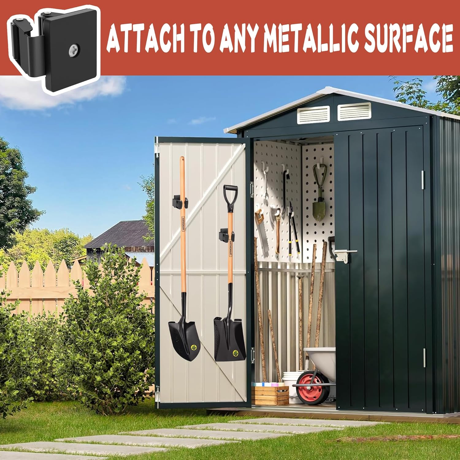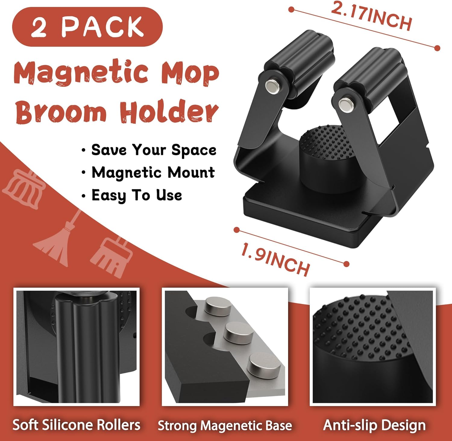 - [Non-slip Broom and Mop Holder]: The useful magnetic broom holders attach to any metallic surface without drilling. Anti-rust and anti-scratch magnetic base, will not damage or scratch toolboxes, tool cabinets, or metal cabinets