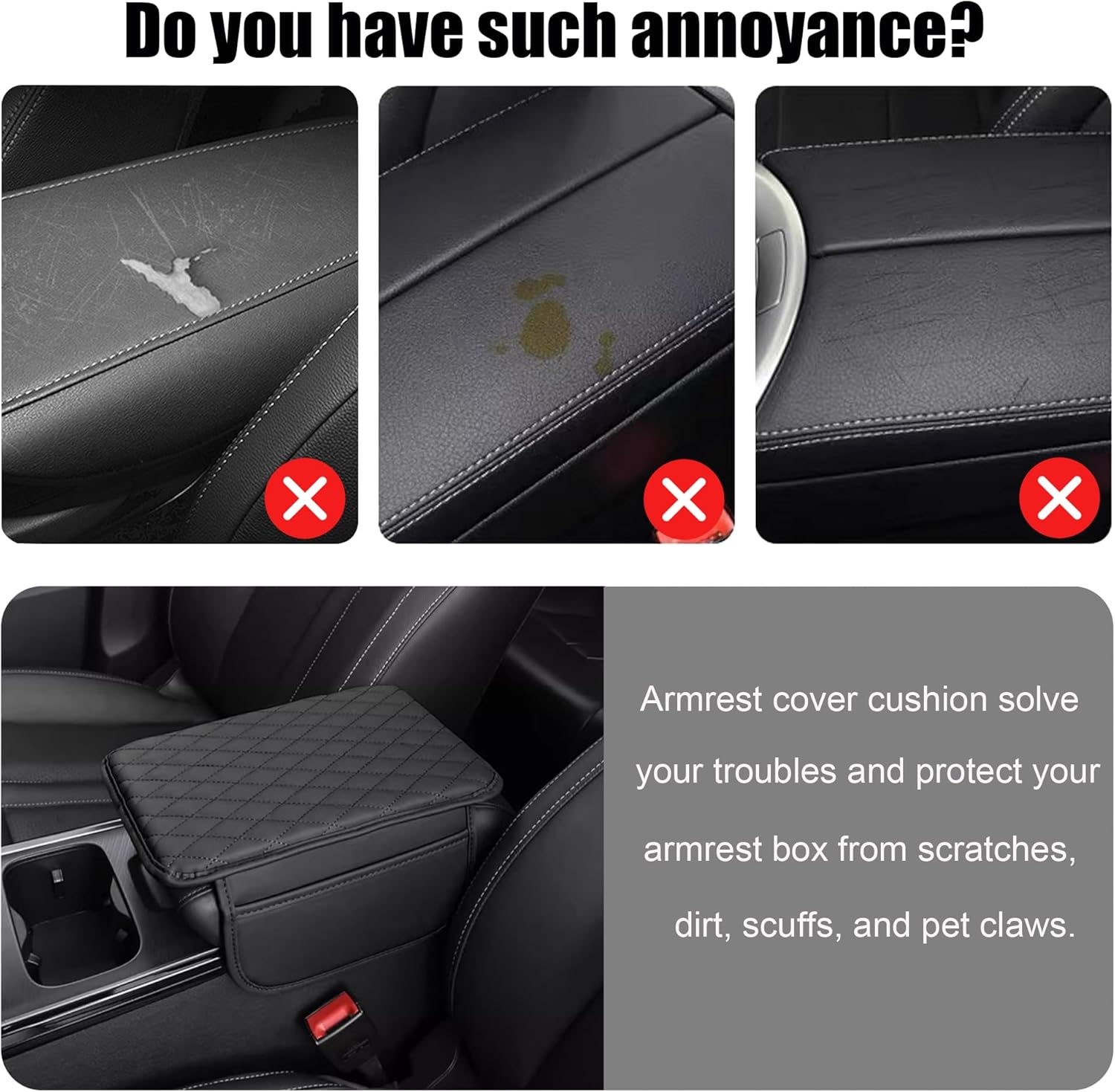 - High Quality Materials: The car armrest pad is made of premium skin- friendly PU leather, which is waterproof, breathable, wear-resistant. Easy to resist daily stains and scratches, easy to wipe clean. Perfect and fashionable diamond stitching, skin-feeling leather, make your driving more comfortable.
