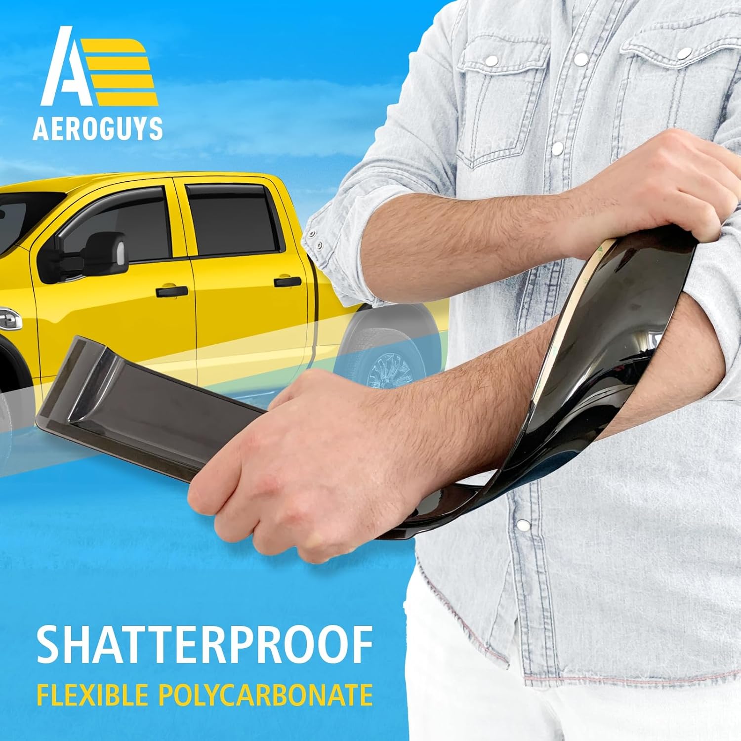 - Incredibly Durable AEROGUYS Auto Window Deflectors β They are made with strong and tough polycarbonate which is clear and scratch-resistant. They also provide UV protection making your ride more comfortable under all weather conditions.